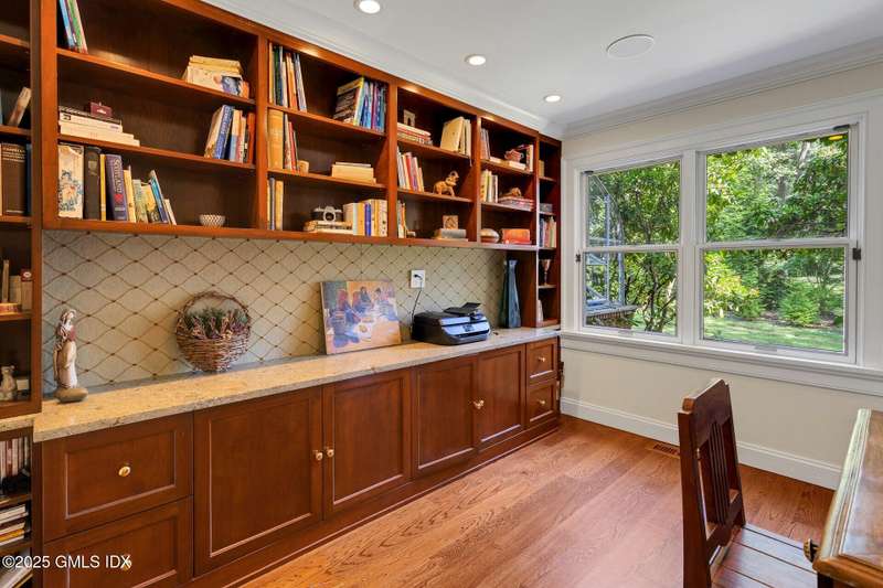 Luxury living awaits at 25 Cogswell Lane, a turn-key residence on a private Westover cul-de-sac. The showpiece kitchen with quartzite counters and premium appliances flows into elegant living spaces with multiple fireplaces. A stunning new lower level with bar and bath (2025), two home offices, and a private gym offer modern versatility. Outdoors, enjoy resort-style living with a heated pool, waterfall, fountain, and expansive patio (2023) surrounded by new fencing and lush landscaping. With a new roof, boiler, water heaters, and pool systems, plus exquisite imported finishes, this home is move-in ready and designed for today's lifestyle.
