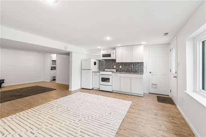 Tucked away on a quiet cul-de-sac yet close to everything, this beautifully updated 4-bedroom, 3-bath ranch offers the perfect blend of privacy and convenience. Step inside and you'll immediately feel at home on gleaming wood floors that flow throughout, highlighting the open-concept layout. Newer windows for enhanced energy efficiency, convenient main-floor laundry, a pantry for extra storage, and a remodeled interior with thoughtful modern touches. The cozy family room, complete with a charming wood-burning stove, adds warmth and character to the main level. But the true gem lies downstairs: a finished walk-out basement with a full kitchen, full bath, and its own living space. perfect for in-laws, guests, or rental potential. And yes, the bathroom floors are heated! Need storage? The suspended garage over the basement provides tons of extra space for all your gear. This home is immaculately maintained and truly shows pride of ownership. Homes like this don't last. Come see it and submit your offer before it's gone!