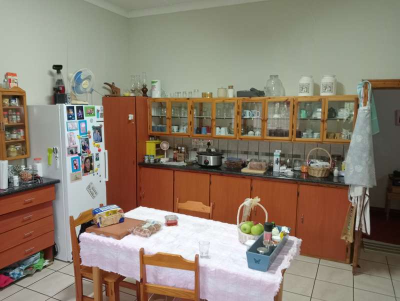 Tucked away in a tranquil setting at the base of the mountain, this well-maintained gem offers the perfect blend of countryside charm and spacious comfort—right in town. Step inside to discover four generously sized bedrooms, each capable of fitting both double and single beds. Three of the rooms come with built-in cupboards, providing storage space that’s hard to come by elsewhere. The home boasts a large living room and dining area, flowing effortlessly into a cozy farm-style kitchen, ideal for both family living and entertaining. With two bathrooms and a welcoming sunroom, there's ample space for everyone to relax. Elegant wooden floors add warmth and character throughout the home, enhancing the overall charm. The property’s outside buildings are equally impressive, featuring: A garage that fits 3 vehicles, extendable to 4 A separate laundry room A workroom An entertainment room with a built-in braai, perfect for gatherings Set on an expansive 4,000+ sqm plot, the beautifully maintained lawn and garden are a true highlight. Equipped with three water tanks and a borehole, the property ensures lush greenery all year round. This is more than just a home—it's a peaceful haven where your soul can rest and your heart can settle.