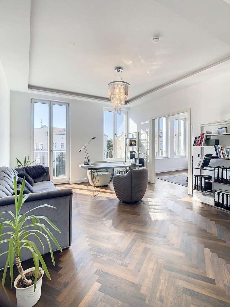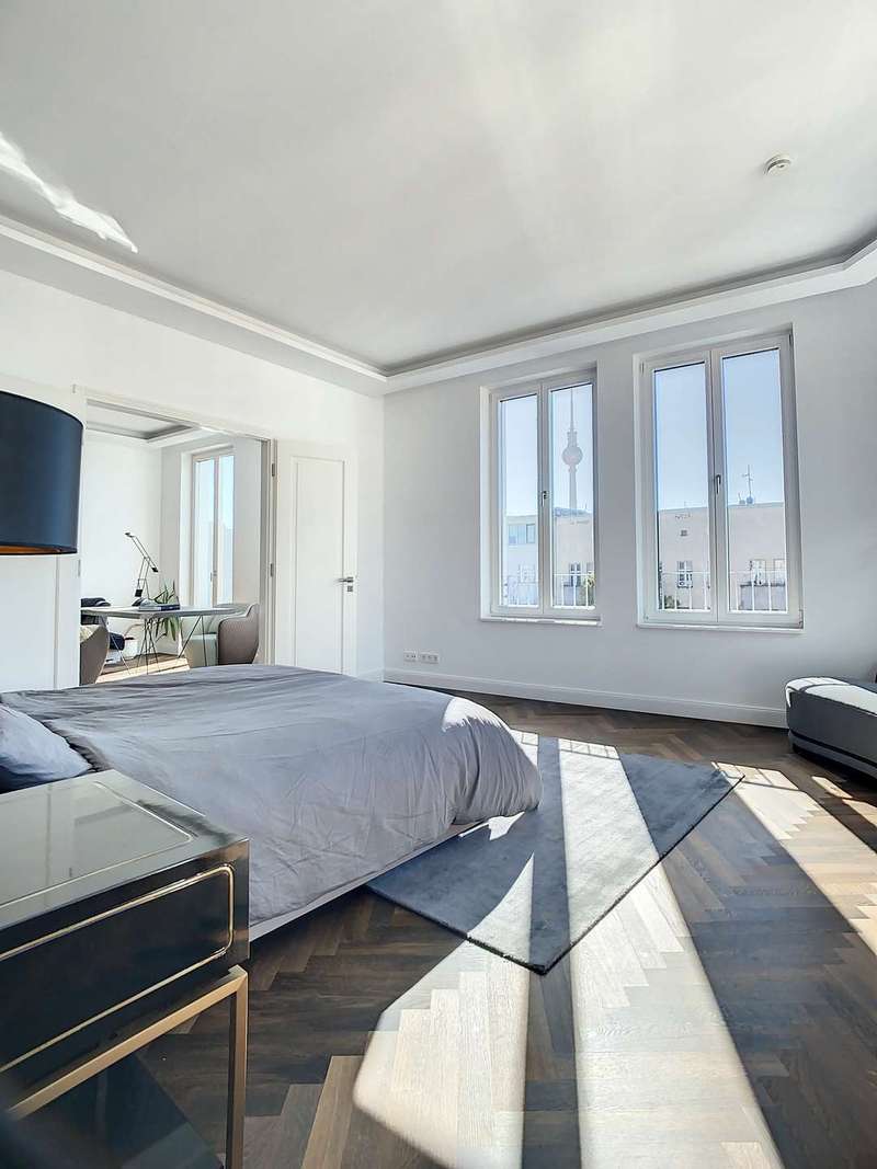 The house was renovated in 2016 and got a complete increase over two floors in the roof. In one of the hottest area of Berlin Mitte is the high-quality the penthouse with southwest orientation and a fantastic view over the city.