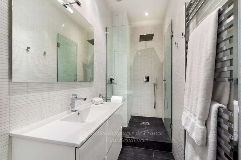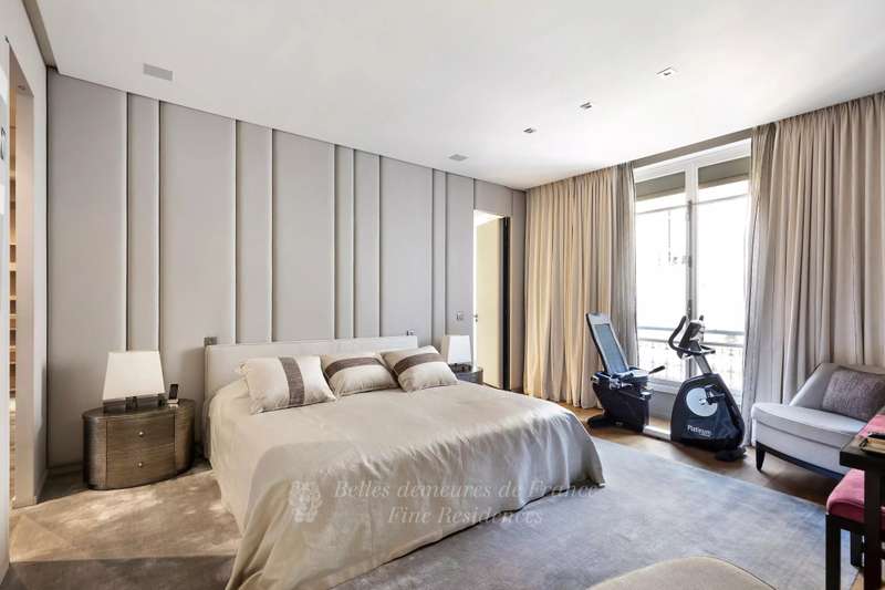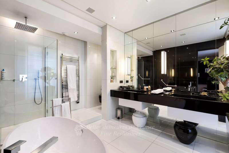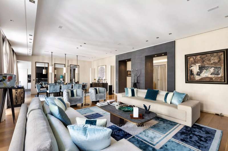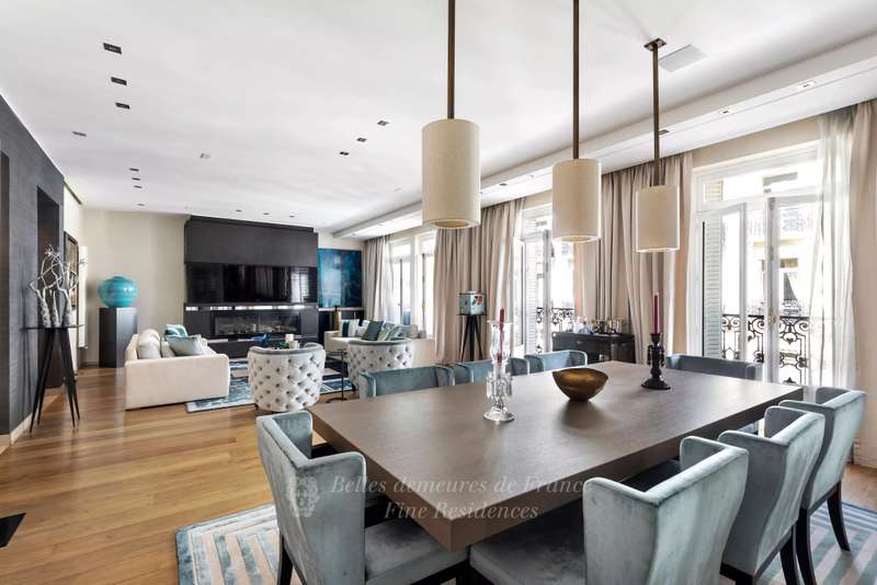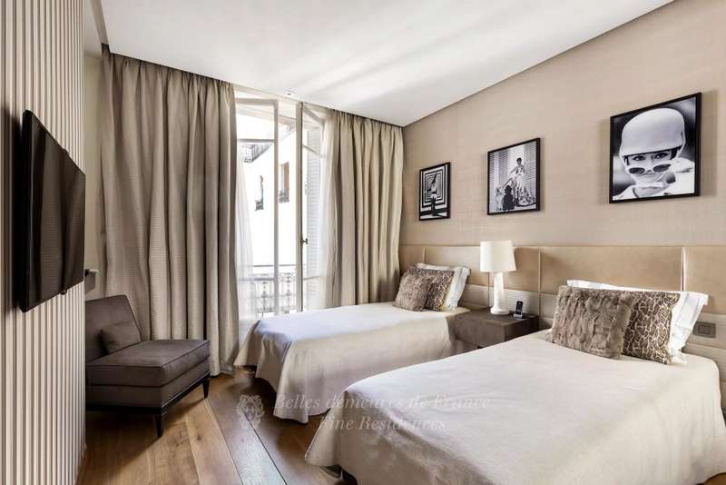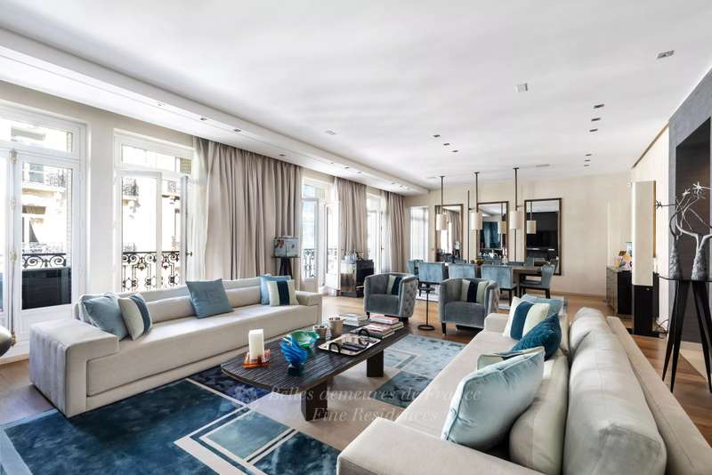 This air-conditioned apartment is on the 3rd floor of a luxurious early 20th century Haussmannian building with a caretaker located in a peaceful street near avenue George V in the heart of the capital’s prestigious Golden Triangle. It includes a double living/reception room, a fully equipped kitchen with dining facilities, a master suite with a bathroom and dressing room, two further bedrooms, and two shower rooms. The bedrooms overlook a courtyard. The apartment has been renovated throughout by a renowned interior decorator. With a cellar. The building’s common areas have been renovated. It is not equipped with a lift.