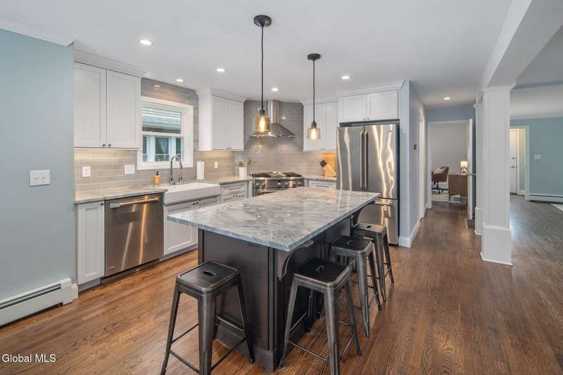 Welcome home to this beautifully renovated gem in the award-winning Niskayuna schools. This 4 bedroom, 3 full bath custom home will simply amaze you with its outstanding renovations. The kitchen is a showstopper with sleek white soft close cabinetry, top tier stainless steel appliances and sleek backsplash. This home features hardwood flooring throughout with all the modern conveniences you desire. A first-floor bedroom and gorgeous full bath add flexibility and comfort like a 5 start hotel. Relax in the upstairs luxurious primary suite with its spa-inspired bath. Completing the second floor are two additional bedrooms and full bath. Let's not forget entertaining with ease on the composite deck in your fenced yard. This home is sure to WOW you!!!