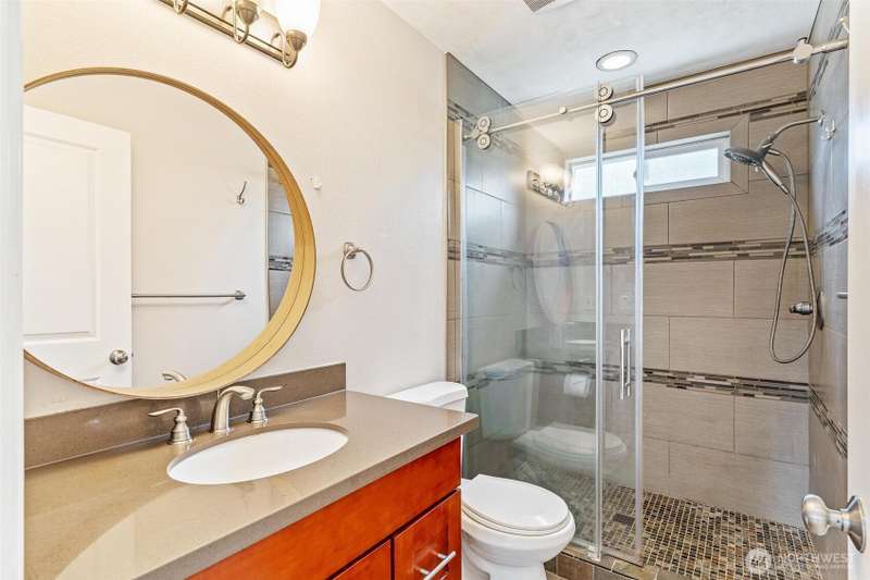 Experience stylish one-level living in stunning Magnolia with additional flexible space downstairs, beautifully updated throughout. The open-concept layout features a remodeled kitchen with quartz countertops, stainless steel appliances, and modern finishes throughout. Relax by the electric fireplace or entertain in the peaceful, spacious backyard. The lower level offers a private guest suite and flex space—ideal for today’s lifestyle. One car garage and desirable corner lot. Located minutes from Discovery Park, Interbay Golf Center, Magnolia Park, and Elliott Bay Marina, this home combines comfort, function, and unbeatable location.