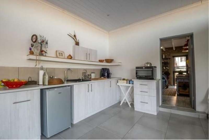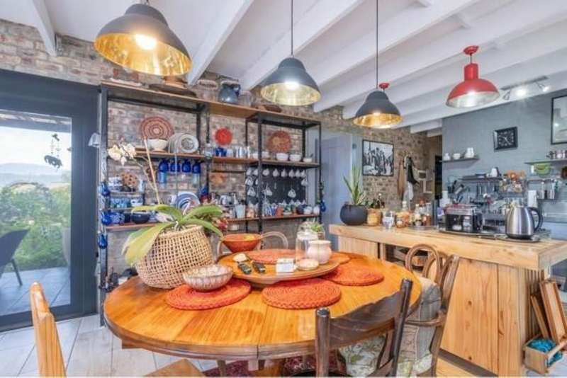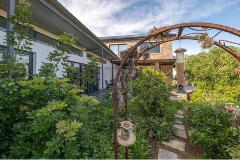 Four-bedroom, three-bathroom home. Your dream coastal opportunity! Positioned in an ideal part of Kleinkrantz, Wilderness. This beautiful home with its sleek design and clean lines offers practical elements like solar power, water tanks and irrigation system and 2 5000l water tanks. Almost Off-Grid. Complete with large aluminum doors and windows, including one way film on the top floor, gives a potential buyer minimal maintenance and adds a clever touch for privacy while still enjoying the views. Being so close to a dog-friendly and fishing beach adds to the idyllic setting. The entrance is walled with an electric gate, The ground level offers: A lush garden with a large section that is on plan as three-bedrooms, this is currently being used as a separate self-catering unit with a large bedroom, bathroom en-suite with double shower, all flowing effortlessly through to a spacious living area and kitchenette. This area opens out through large glass stack doors onto a covered patio. The main house ground floor offers: An amazing gas operated culinary kitchen, large twin sinks and a scullery. The open plan setting looks out onto a bright spacious lounge with large windows. This in turn opens out through glass stack doors, onto a relaxing covered patio with a lush garden setting. At the rear of the house there is a modern guest bathroom with shower, twin basins and separate toilet. Linnen cupboard. A door that opens up to a large store/utility room with shelving, this in turn opens up to a garage which can accommodate two cars. A staircase takes you up to the next level which offers: A very large open space plan area, with lounge, bedroom and spacious en-suite bathroom. This area can easily be transformed into two bedrooms. The one-way glass on the expansive windows on this level, give you the privacy while still being able to enjoy the partial sea view. The chair lift, currently installed, makes this home an option for someone who struggles with stairs. The property is walled with part fencing. Contact us for a viewing