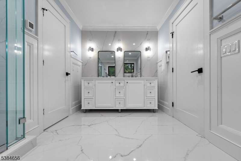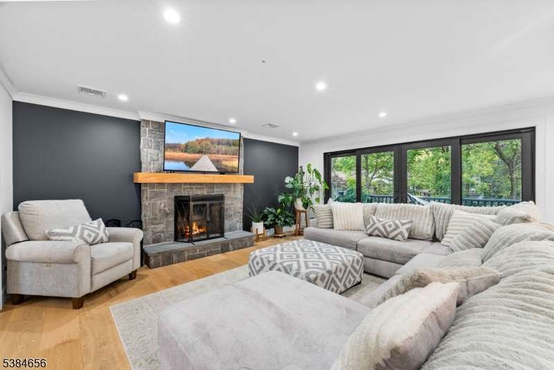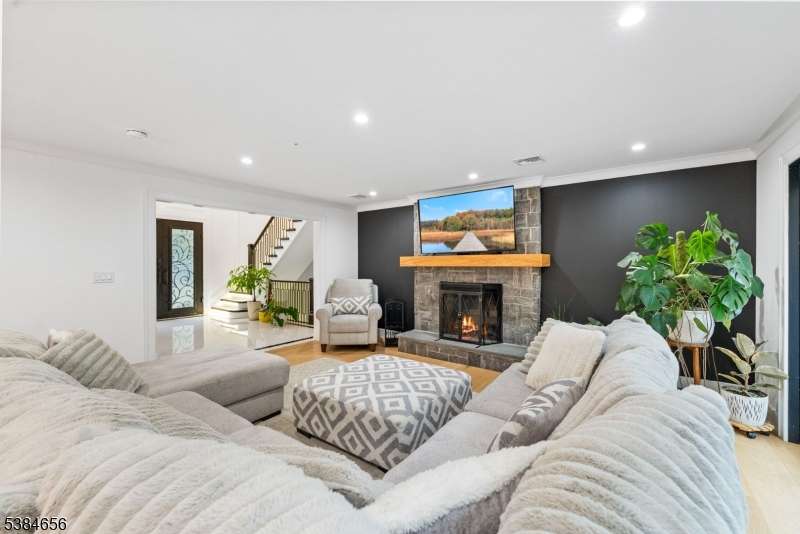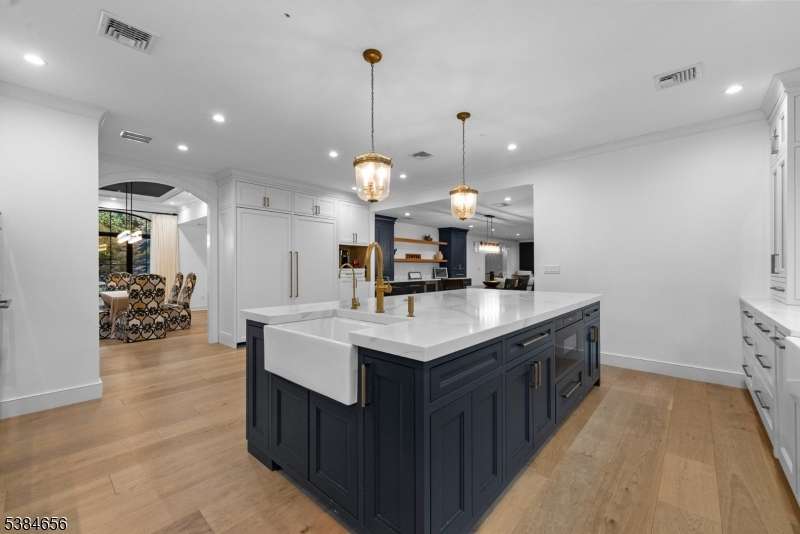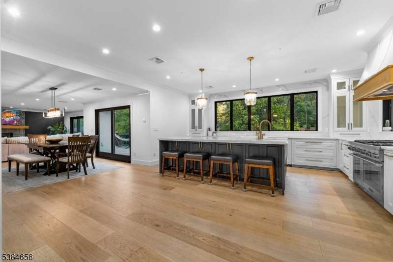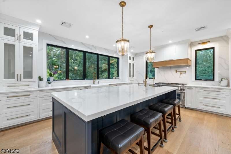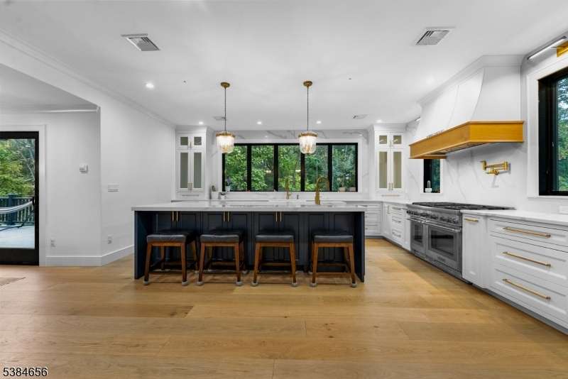 Luxury living at its finest! Elegance begins at the curb, where a custom driveway with a Belgian Block entrance immediately sets the tone for sophistication. Oversized European metal doors are more than just an entryway they're a bold statement, welcoming you into a grand two-story foyer. The chef's kitchen boasts a massive quartz island, full-height quartz backsplash, and high-end stainless appliances, including a 48-inch Thermador gas range with pot filler. The oversized family room with fireplace offers sliders to a composite deck for seamless indoor-outdoor living. A private home office with custom built-ins, a living room with extensive woodworking and coffered ceilings, and a dining room with arched doorway and tray ceiling are all bathed in light from Andersen 400 Series windows. The first-floor primary suite features a spa-like ensuite bath, while upstairs you'll find six bedrooms, including another luxurious primary retreat. The lower level provides a full additional living space with a flex rooms, two full baths, full kitchen, and family room ideal for guests or an au pair. With 7 bedrooms and 7 full baths, the home showcases custom millwork and thoughtful finishes throughout. Outdoors, nearly one acre of manicured grounds offers deck, patio, gardens and walkways for both relaxation and entertaining. Perfectly situated in a highly sought-after neighborhood with top-rated schools and unbeatable access to shopping, dining, and commuting routes.