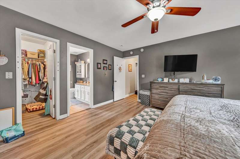 Welcome to this charming 3-bedroom home featuring a perfect blend of comfort and syle. The main level boasts gleaminghardwood floors, while the upper level has been updated with new LVP flooring. The spacious primary suite includes a private en-suite bath for your convenience. The finished basement provides versatile space, ideal for a man cave, exercise room or home office. Step outside to enjoy the beautifully landscaped yard, complete with a deck and fenced in backyard, perfect for entertaining or relaxing in privacy. This home is move in ready and waiting for you!
