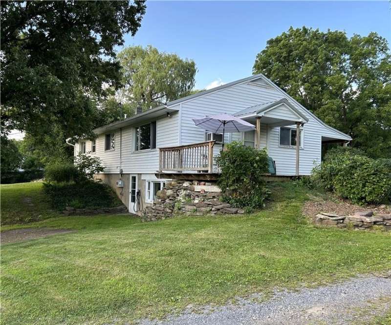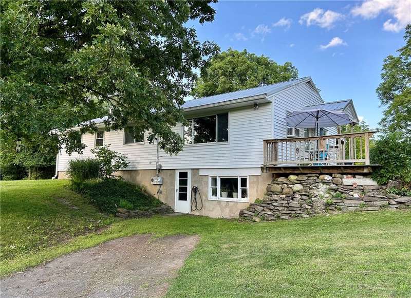 Welcome to 247 Applegate Road North. Perfectly located between Ithaca and Trumansburg, this 4-bed, 2.5 bath ranch-style home sits on a large, partially wooded 8-acre parcel next to the Hillendale Golf Course. Entering through the back door, you'll find convenient single-story living. Downstairs, the former one-car garage on the right could be restored, the basement could be upgraded to double the living space, or you could do both! The house was re-roofed in 2016. Since then the following major updates have been completed: a new septic system, french drain around the foundation, carbon fiber straps in the basement, and a new sump pump. Out across the expansive back yard there are two storage sheds, one with electric service (so handy, if you want to power another building). There are established pear and apple trees, berry bushes, and mowed paths winding back through the wooded back portion of the parcel. Contact your agent today to schedule a showing
