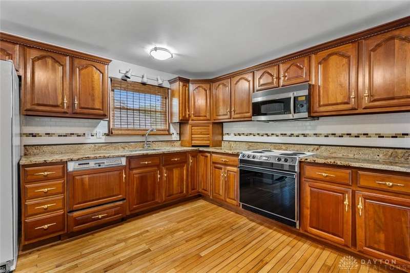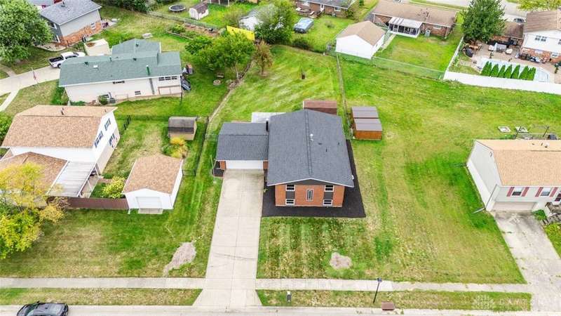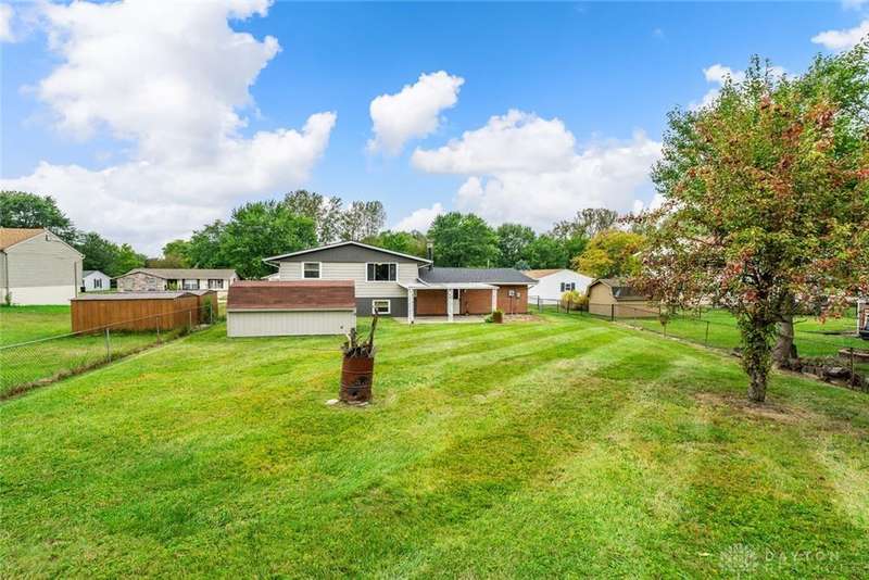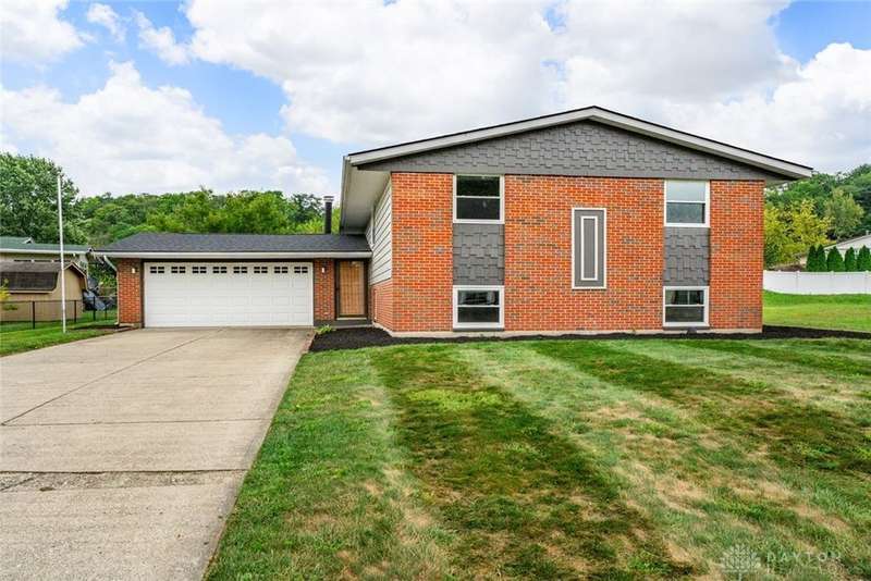 Welcome to this well-maintained brick bi-level home in Holiday Valley, Mad River Township, Clark County. Though it carries a Fairborn mailing address, it's located on Enon's west side within the Greenon Local School District.Conveniently situated just 15?20 minutes from Wright-Patterson Air Force Base and minutes from I-675 and I-70, the home offers easy access to nearby areas and amenities.This 3-bedroom, 2-bathroom home is approximately 1,938 square feet, filled with natural light and a spacious feel throughout.Upstairs features a bright living room with a large picture window overlooking the backyard and flowing into the dining area. The kitchen includes ample cabinet space, granite countertops, a modern backsplash, pantry, and appliances: refrigerator, stove, built-in microwave, dishwasher, garbage disposal, and trash compactor.The primary bedroom offers generous storage with both walk-in and standard closets. All bedrooms have brand-new grey carpet, and a fully remodeled modern bathroom completes the upper level.The lower level includes a large Recreation Room with a wood-burning fireplace, a second full bathroom, and a combined utility, laundry, and storage room. A versatile bonus room offers space for a home office, fitness area, hobby room, second living room, or potential additional bedroom.Outside features a fully fenced backyard, covered patio, storage shed, 2-car attached garage, and a long driveway with ample parking.Recent updates include a new roof (2024) Full 200 amp upgrade inside/out electrical panel. (2025) Don't miss your chance to own this charming brick home. Schedule your private tour today!