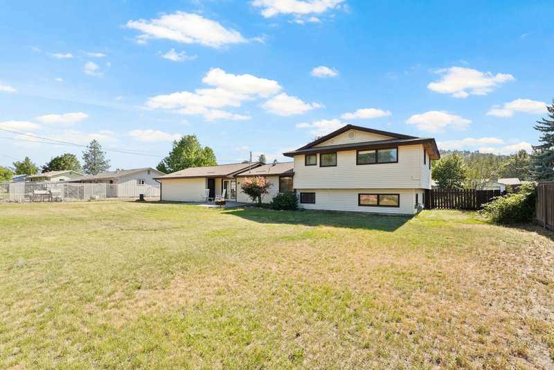 Welcome to this generously sized home offering over 2,900 sq. ft. of versatile living space on a large 1/3-acre lot. Featuring 4 bedrooms and 3 bathrooms, this home is ideal for those looking for space, comfort, and flexibility. The main level boasts a bright and open living room with a cozy fireplace and French doors leading to the backyard, perfect for indoor-outdoor entertaining. Upstairs, you’ll find three well-appointed bedrooms, including a spacious primary suite. The lower levels add even more functionality, with a large family room already plumbed for a wet bar and space for a fridge making it an excellent setup for multi-generational living or guest quarters. There’s also a full basement with ample storage. Enjoy central A/C, a covered patio, a huge fenced backyard, and plenty of parking. Whether you're hosting gatherings, need room to grow, or want separate living spaces under one roof, this home has it all. No HOA, New roof w/transferrable warranty, new AC in 2024.
