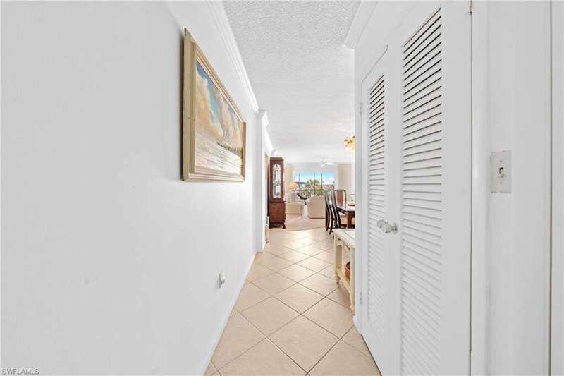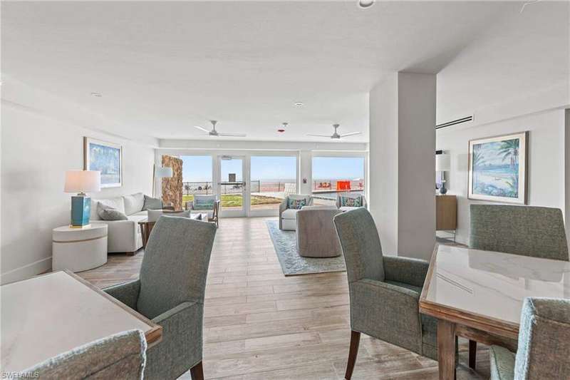 The elements of sophistication, prime location, and timeless style come together in this impeccable third-floor Gulf-front condo at Gulf Towers in the Moorings. Offering two bedrooms, two bathrooms, and approximately 1,300 square feet of living space, this residence blends elegance with the ease of coastal living. From every bedroom window, enjoy the soothing sounds of waves and the scent of the ocean breeze, with direct beach access right outside your door. Situated west of US 41, the condo is just minutes from Naples' finest attractions. The renowned 5th Avenue South and 3rd Street South districts are a five-minute drive down Gulf Shore Boulevard, Publix is less than five minutes away, and the Shoppes at Waterside can be reached in under ten minutes. From the refined lobby and foyer, the elevator takes you to the third floor where this inviting retreat begins. The entry opens to the kitchen and dining area on the right, with the kitchen offering modern amenities, abundant counter and cabinet space, and a secondary hallway exit. The dining space flows seamlessly into the great room, where expansive windows and an enclosed balcony capture stunning views of the Gulf. This open design creates a natural setting for entertaining, connecting the kitchen, dining, and living areas with ease. The primary bedroom is filled with natural light and includes sliding door access to the balcony. Its en-suite bathroom features a vanity, tub and shower combination, and generous closet space. The second bedroom is equally spacious, with abundant light and storage. This property is complemented by updated community amenities including a clubroom, a Gulf-front pool, and direct beach access. Convenience is enhanced with an assigned covered parking space, additional guest parking, laundry on the same floor, and the benefit of an A+ rated school district. This home embodies the true Naples lifestyle, offering the perfect coastal escape.