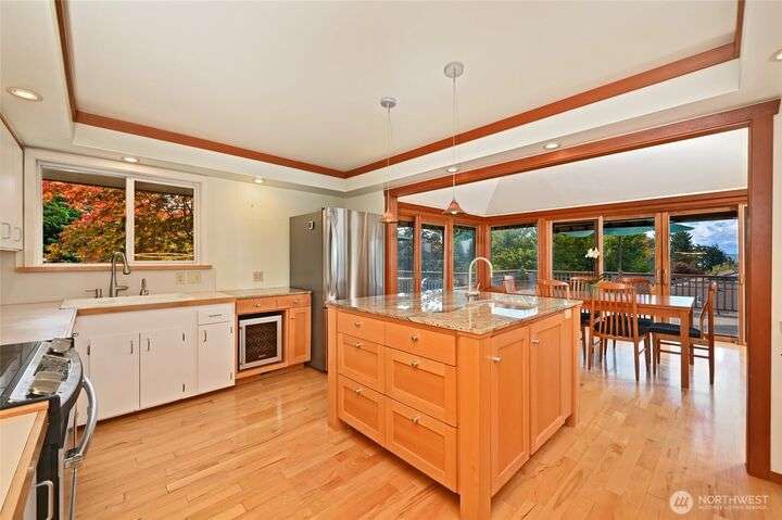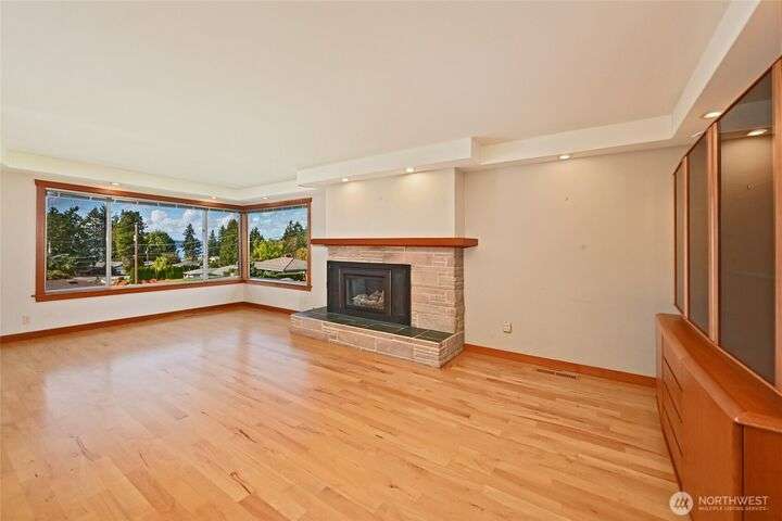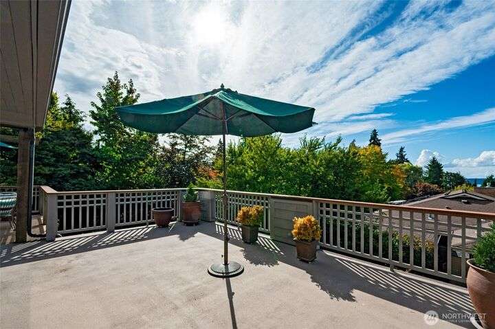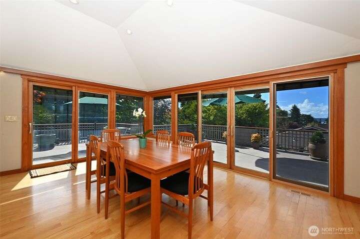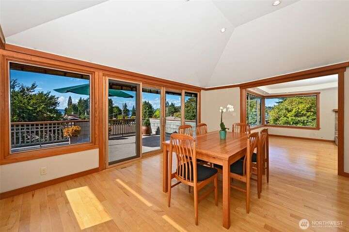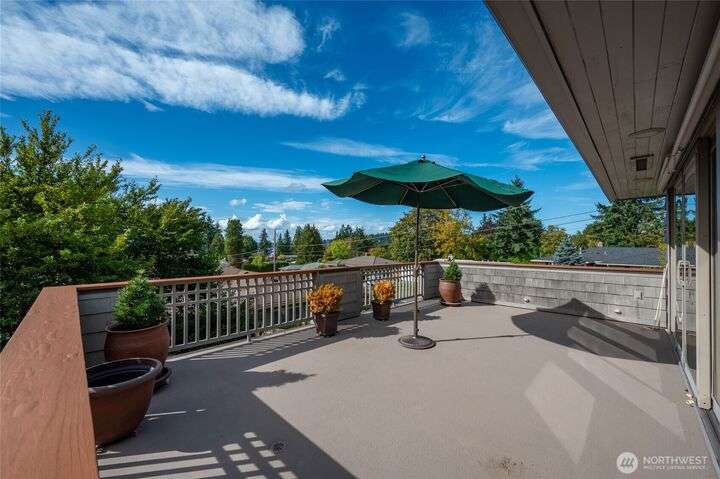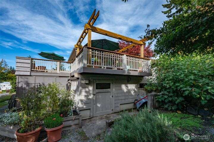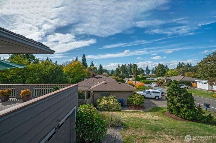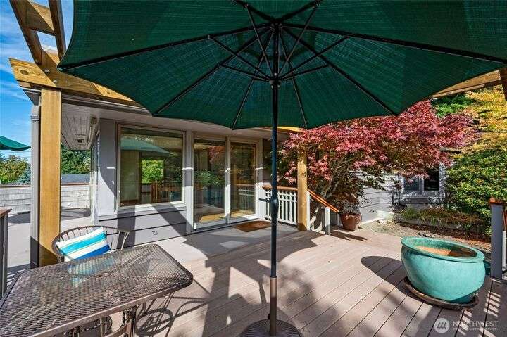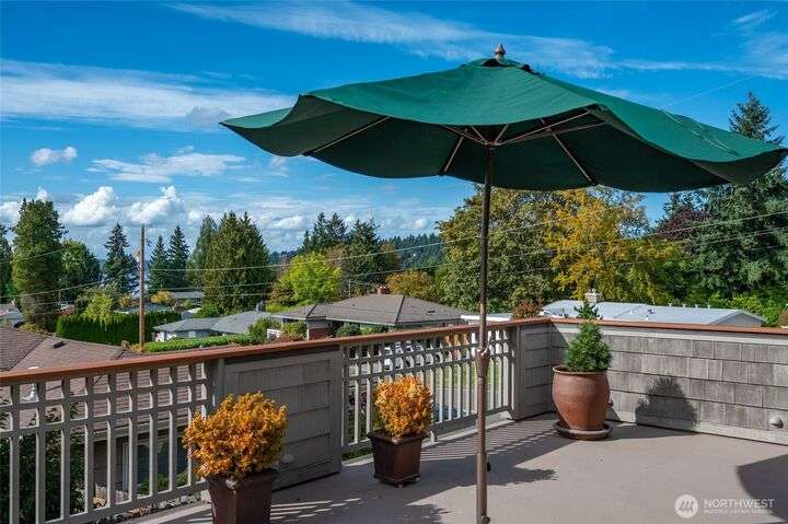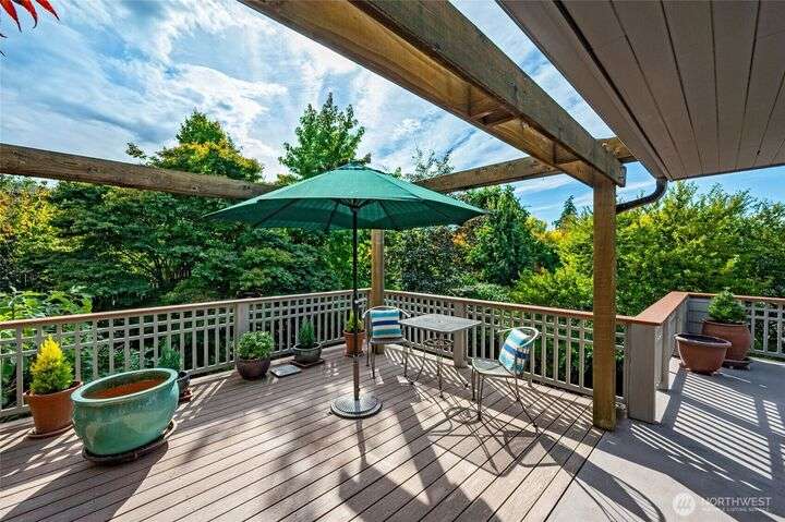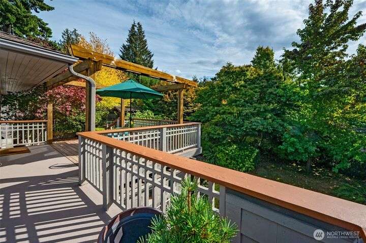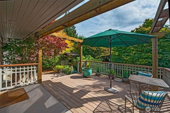 Nestled on a cul-de-sac and high off the street for utmost privacy and views, you'll find this mid-century home, surrounded by mature garden spaces! The living room has gleaming hardwoods and gas fireplace, the kitchen opens to the remodeled dining room with vaulted ceiling and recessed lighting, Pella sliding doors open to the wrap-around deck for dining and entertaining! Upstairs are two bedrooms situated at the back of the home for quiet retreat, a large walk-in closet, and a full bathroom. Downstairs is partially finished with a three-quarter bath, fireplace, high ceilings, family room and an opportunity for more finished space. There is AC, a work shop , large one car garage, and a large outdoor storage room. Not to be missed!!