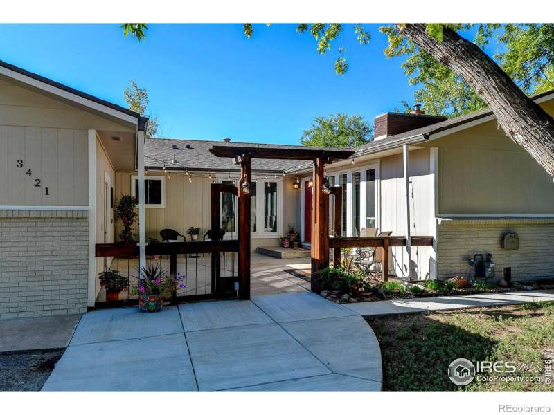 Peaceful Fort Collins Retreat-Welcome to this unique and inviting 4-bedroom, 2-bath home tucked away in a serene Fort Collins setting. From the moment you arrive, you'll notice the charm- beautiful landscaping and a welcoming courtyard that sets the tone for the rest of the property. Inside, you'll find a thoughtful blend of updates and character: freshly painted interior walls and cabinetry, gorgeous bamboo and LVP flooring, and two striking fireplace features-one with a cozy wood-burning stove and the other with dramatic decorative rock. The spacious primary suite offers a private retreat with its own sliding door to a secluded patio. Outdoor living is where this home truly shines. With patios on three sides, a cozy fire pit area, and a fully fenced yard that backs to expansive open views-perfect for entertaining or simply enjoying peaceful Colorado evenings. For the hobbyist, an oversized, heated garage provides plenty of space. Located just outside city limits, the property benefits from lower taxes, while the HOA allows for the addition of accessory structures. Practical updates- including a newer roof, furnace, A/C, and modern fixtures- make this home as functional as it is stylish. Pre-inspected and ready for its new chapter, this one-of-a-kind Fort Collins retreat on 0.58 acre combines comfort, character, and connection to nature.