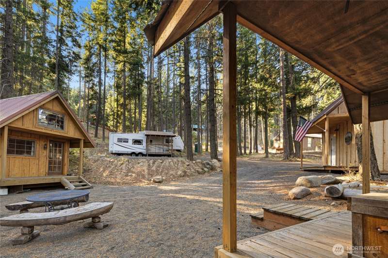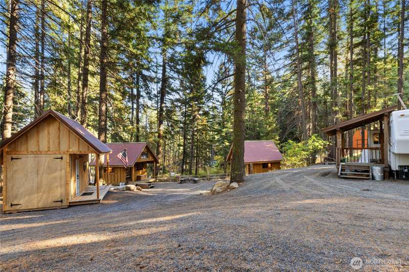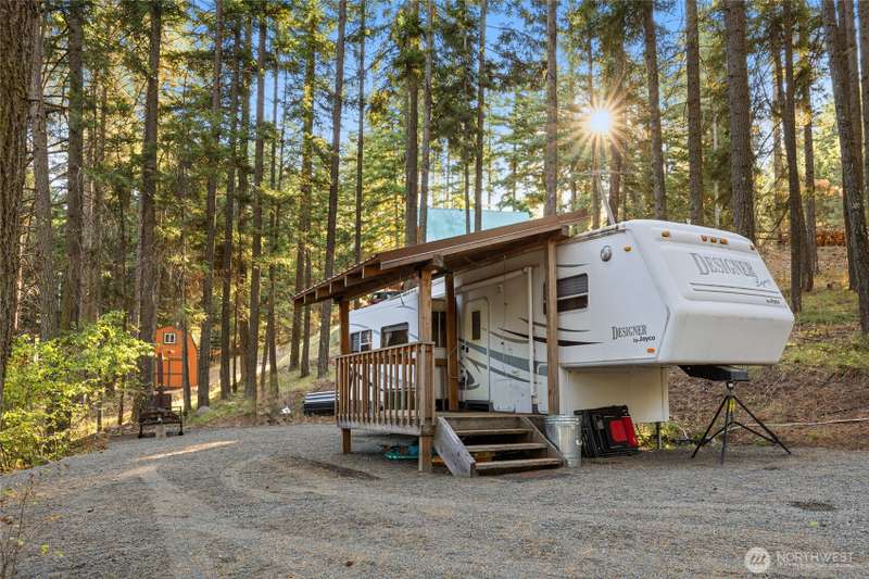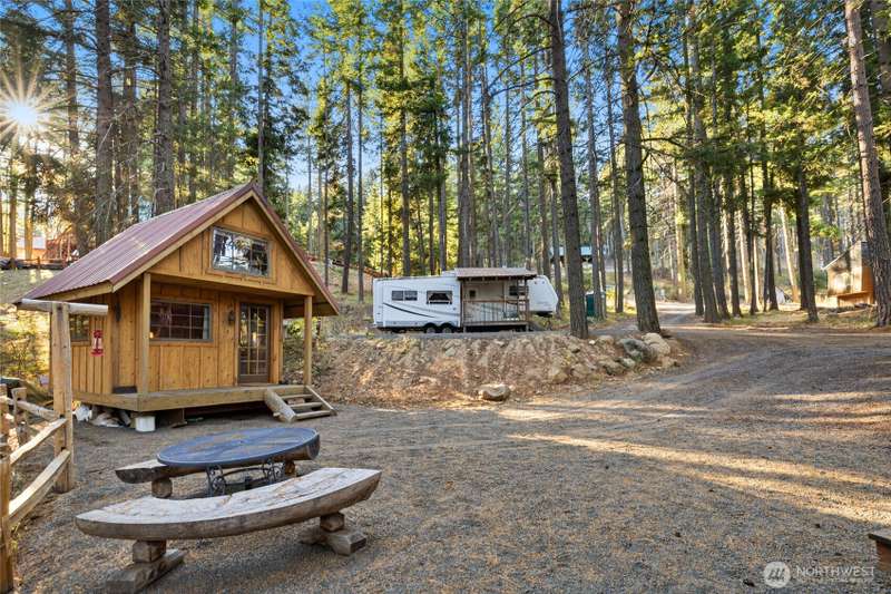 Escape to this one-of-a-kind retreat in Sky Meadows! This .65-acre lot is perfectly set up for gathering and glamping with 2 "mini-cabins", an RV, running water and an installed 2-bedroom septic system. The two fully furnished playhouses offer a cozy cabin feel, while the 2001 Jayco 5th wheel with triple slide-outs provides a kitchen and additional sleeping space. A detached shed adds storage, and a second RV pad with water and power hookups accommodates two more RVs for all your guests. Enjoy it as-is or build your dream cabin. Sky Meadows features trail access for ATVs, side-by-sides & snowmobiles, plus there's a community clubhouse with pool. Experience the rugged outdoors—without really roughing it!