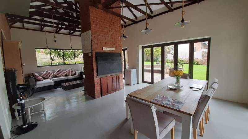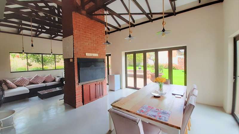 Magnificent 405m2 Home on 962m2 Stand, This DREAM home is situated in one of South Africa's most secure estates. This home offers on the upper level: Pajama lounge, 3 bedrooms, 3.5 bathrooms. (Main bedroom with en-suite bathroom/ walk in cupboards. Both bathrooms with upmarket finishes. Ground level: 3x Spacious open plan living areas with fireplace flows onto a large outdoor braai entertainment area. Spacious granite kitchen, separate scullery, gas hob, space for your essential appliances. Private study at entrance door can be used as 4th bedroom or playroom. Staff room with bathroom and direct access to the house/can be used as laundry room. Double automated garage. Sun splashed pool with landscaped garden. Irrigation/ceiling fan's/ blinds included. Midlands Estate is one of our larger estates, located on the southern side. Easy access to Pretoria- Botha Avenue and R21 to catch a flight. There are a few Gautrain stops in the estate. N1 can be reached in about 5 min. The estate offers a lot of parks with a communal indoor pool, open public pools, tennis courts, volleyball, and squash courts. The herbal garden is there for the advantage of the residents for personal use. Bird viewing areas with a fishing dam and walking trails are a large attraction. They have churches, storage units, Retire full and sectional title units, buffet restaurant, day hospital and fragile care, everything at your convenience. The land sizes are between 600- 1000sqm. Houses range from 180sqm and bigger. There are two access gates with guards that patrol the estate 24 hours. This is the lifestyle with luxury that you are looking for with a pre-primary and a baby school on their doorstep.