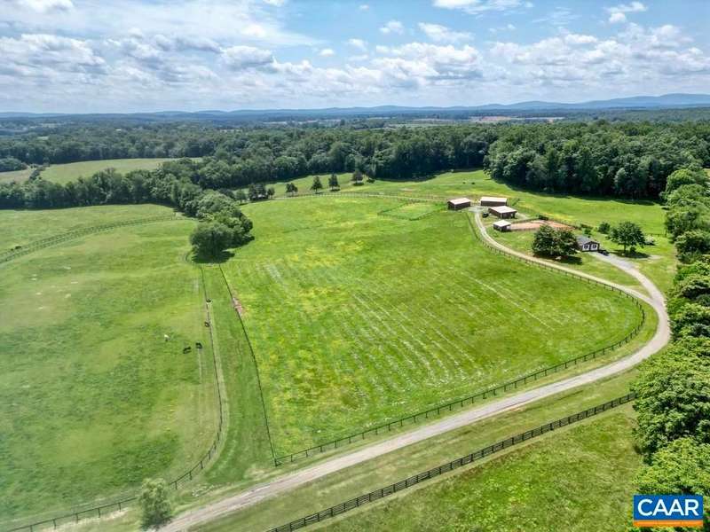 Prime 115-acre agricultural property with business potential along US29 growth corridor between Charlottesville and DC. Currently operates as horse farm with 7 fence paddocks w/water, several large run sheds, workshops, outbuildings, and a renovated brick manager's residence. A private gated entry with deceleration lane off US29 offers ease of access and privacy. The property is ideal for working farm, equestrian facility, event venue or clamping retreat. Wine country horse farm with prime Road frontage and gated entry.