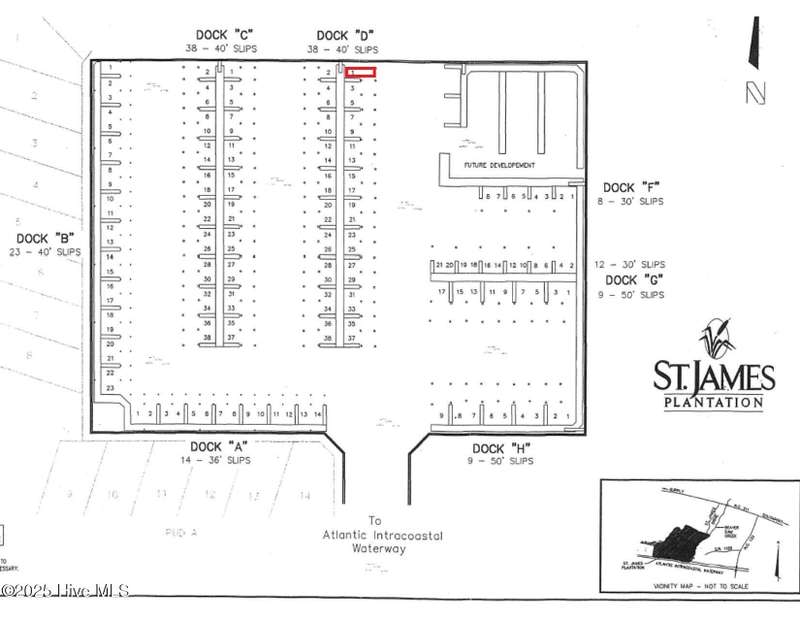 Rare opportunity to own one of the most conveniently located 40' wet slips in the full-service and well-protected St James Marina. This slip offers water, electric, and dock box. Just steps from the Beacon 315 Grill & Tiki Bar, as well as the parking lot, makes for convenient loading and unloading. St James Marina offers easy access to the Intracoastal Waterway and the Atlantic Ocean. It is not a requirement to own property in St James to purchase and own this convenient wet slip. Now, let's get out there and make some waves! Welcome to St James, The #1 Coastal Community in NC!