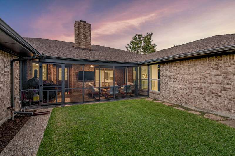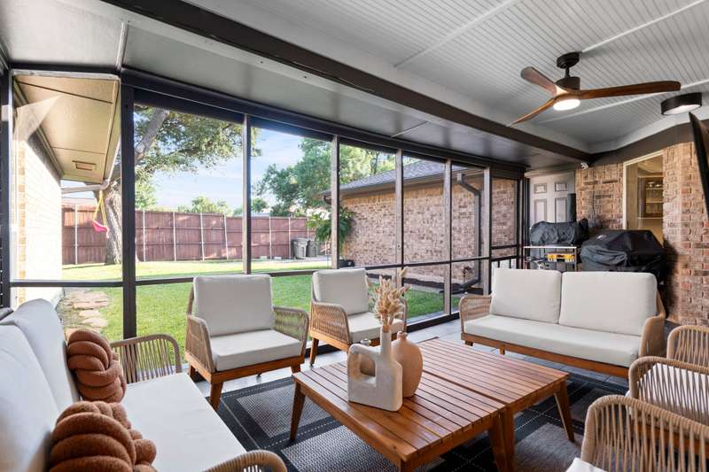 A gem in the neighborhood, this beautifully updated 4-bedroom, 2.5-bath home offers 2,525 square feet of open, light-filled living space with thoughtful updates at every turn. From vaulted ceilings and a cozy gas fireplace in the living room to designer finishes throughout, every detail has been carefully considered. The flexible layout includes a designated office plus a fourth bedroom that can easily serve as a playroom or second living area. The kitchen is outfitted with a touch-activated faucet, KitchenAid dishwasher, and GE built-in microwave. Just off the kitchen is a breakfast area, while a separate formal dining room offers the perfect setting for larger gatherings. The primary suite is a private retreat with floated walls, custom lighting, and fresh paint. The ensuite bathroom features separate his and hers sides, an oversized walk-in shower with updated glass and fixtures, and separate closets. Additional baths have been fully updated with fresh vanities, tile, and fixtures. Peace of mind comes with major improvements such as a new roof (2023), updated drainage and sprinkler systems, and a new alarm system. The garage has been upgraded with painted walls, textured ceilings, and luxe epoxy floors. Outdoors, the screened in porch is perfect for entertaining year-round, complemented by professional landscaping, outdoor up-lighting, and a spacious shed.Located in the Country Place community, residents enjoy unmatched amenities including pickleball and tennis courts, swimming pools, a 9-hole golf course, green spaces, ponds, and an exercise room. The location is truly exceptional with just minutes to Village on the Parkway and Prestonwood Place for dining, shopping, and fitness, and close to the highly desired Brookhaven Country Club. Every improvement and finish reflects meticulous care and thoughtful updates, making this a turnkey home and a standout opportunity in one of North Dallas most desirable pockets.