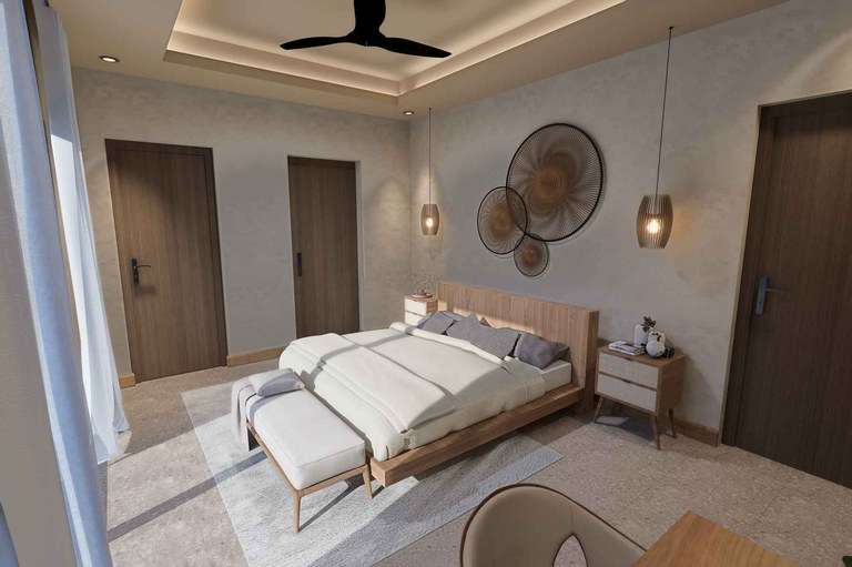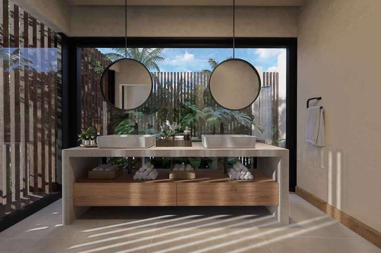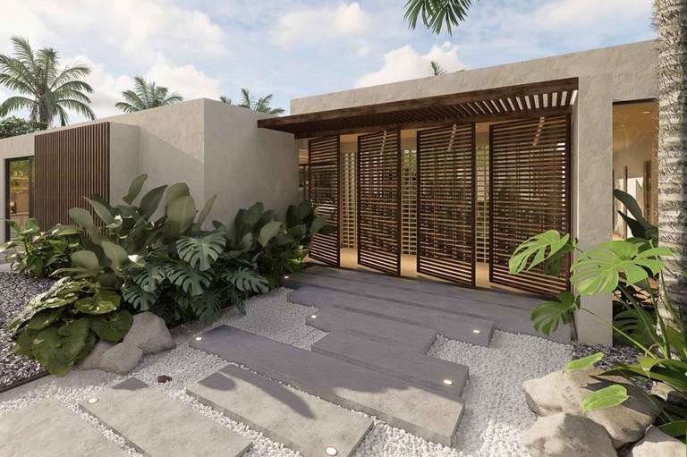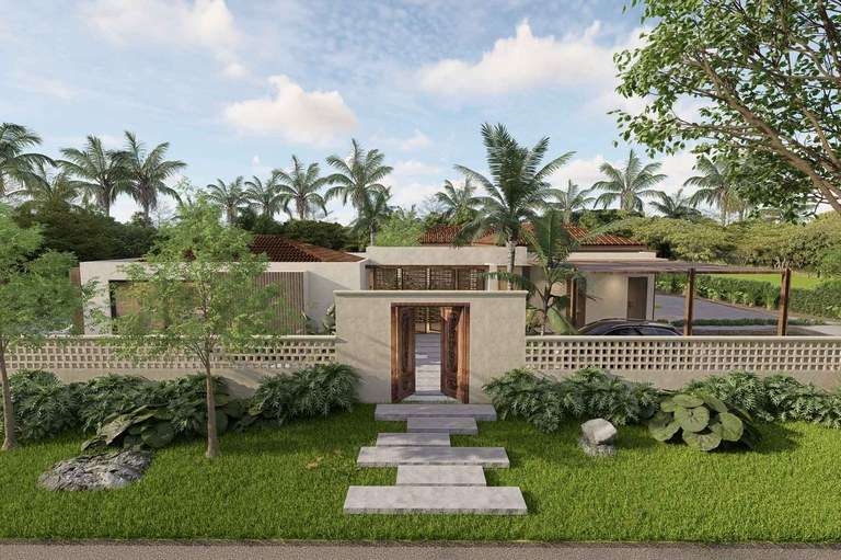 Designed with mindful luxury and timeless sophistication in mind, Casa Los Feliz is a single-level home featuring four spacious bedroom suites and four and a half bathrooms. The residence comfortably accommodates 12 to 14 guests, making it ideal as a full-time residence, vacation getaway, or income-generating rental property. A 53-meter (174-foot) wide frontage welcomes you with manicured tropical landscaping and a grand entrance that leads into a thoughtfully arranged interior where social spaces and private bedrooms are intelligently separated.