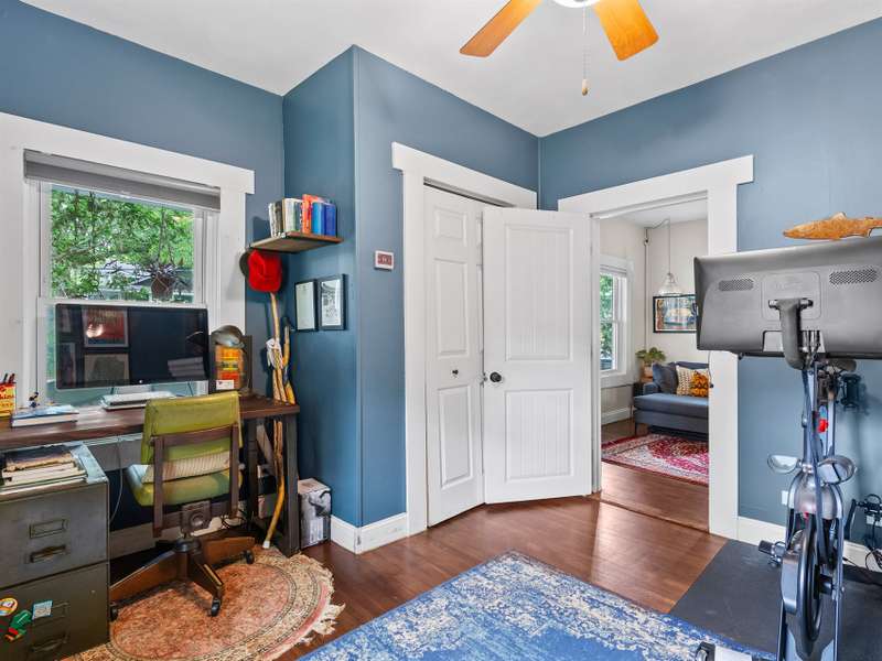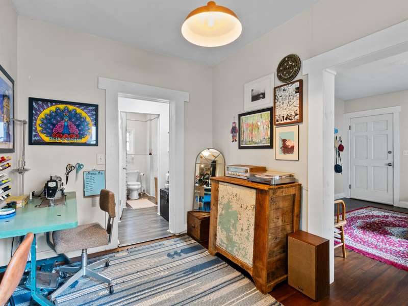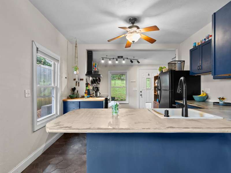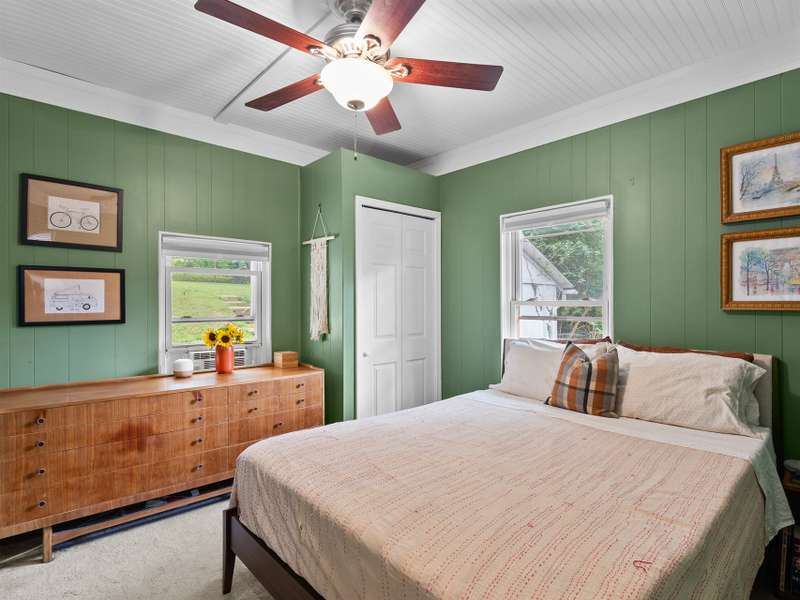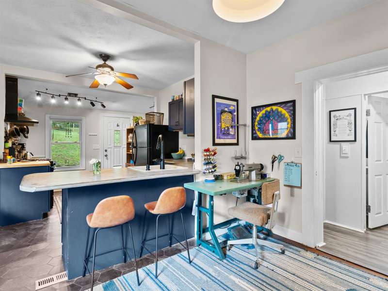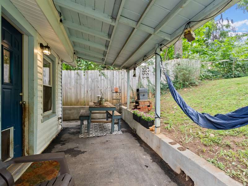 Come see this thoughtfully styled two bedroom one bath cottage steps away from West Asheville's beloved Haywood Road! A covered front porch and sun-filled living room welcome you into the home where you will find refinished original hardwood flooring throughout the main living area and an updated open concept kitchen. The primary bedroom offers privacy with a view of the large fenced in backyard and the second bedroom is currently set up as a home office/exercise area. Basement makes a great workshop area, while the detached garage provides ample space for storage with many possibilities for future use!7 min drive to the River Arts District, 10 min drive to downtown Asheville, 10 min drive to the Biltmore, and 15 minute drive to AVL airport!2022 updates include: new metal roof, water heater, washer/dryer, range/hood, tile flooring in kitchen, light fixtures, new fence. Furnace was replaced in 2019.