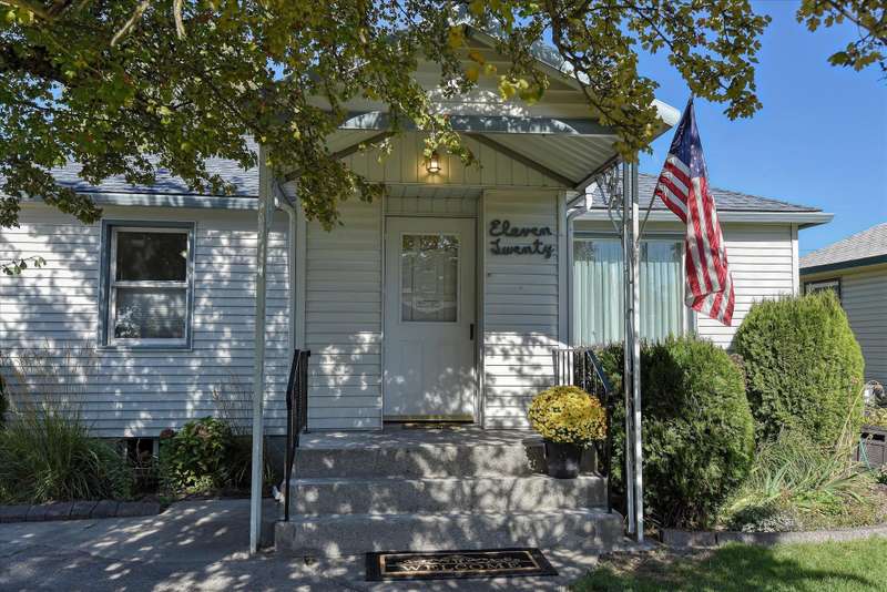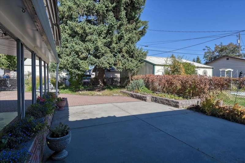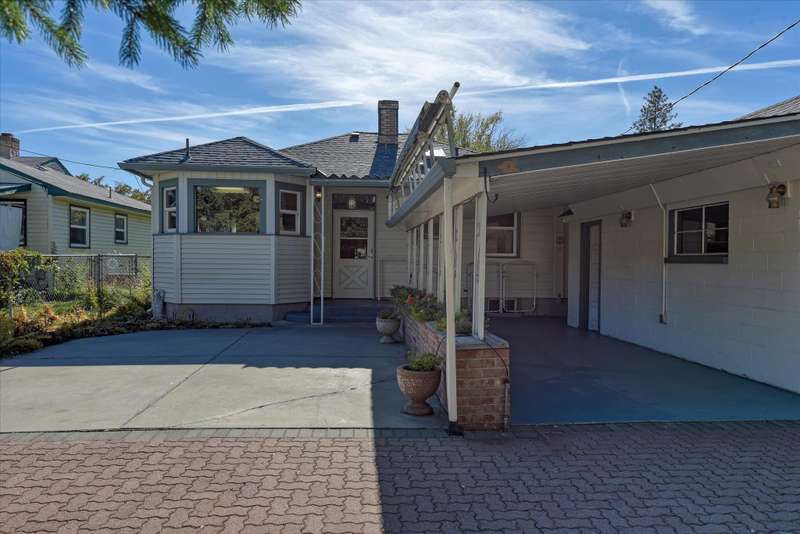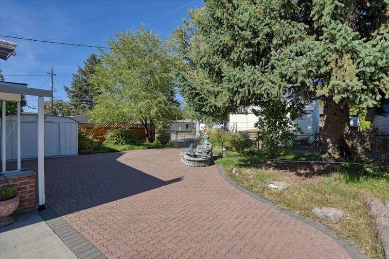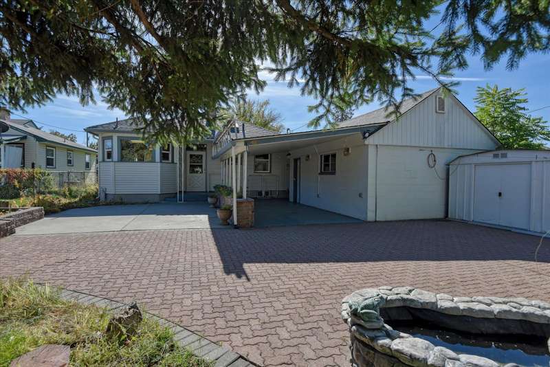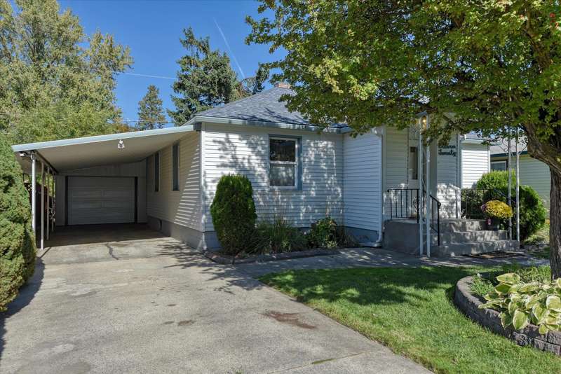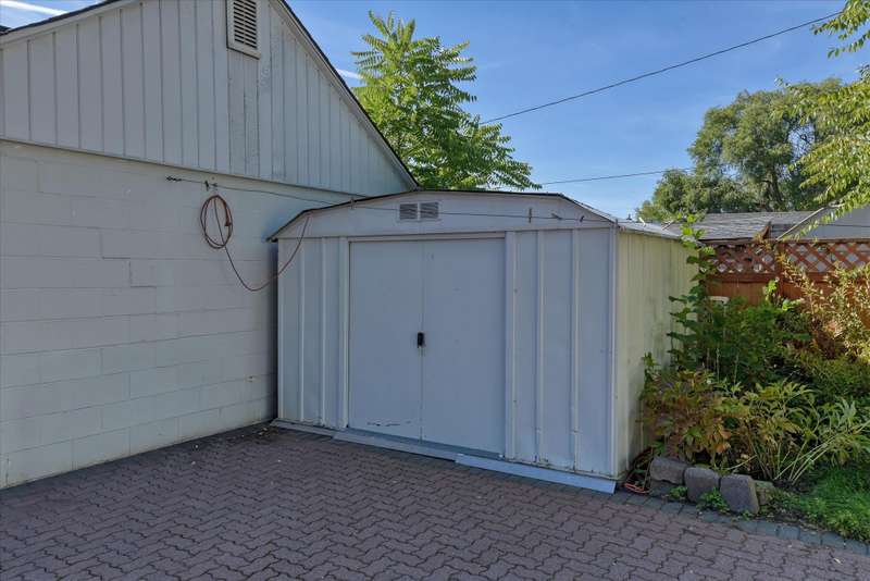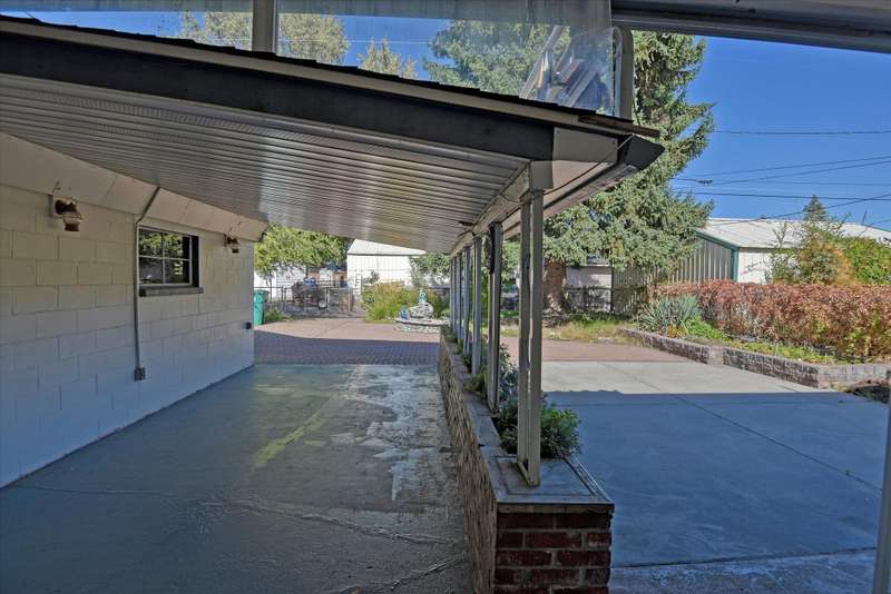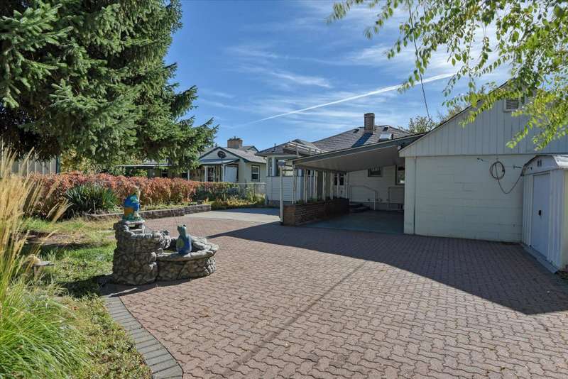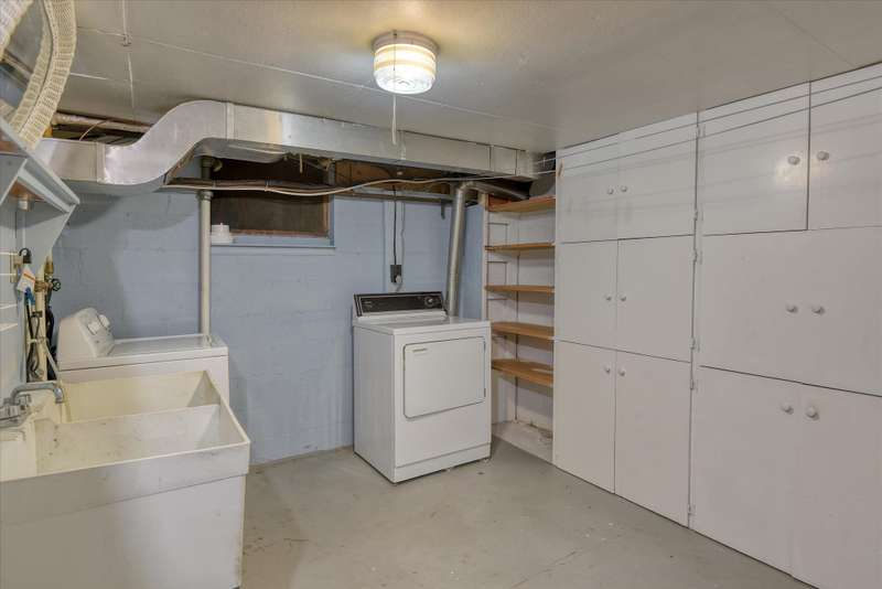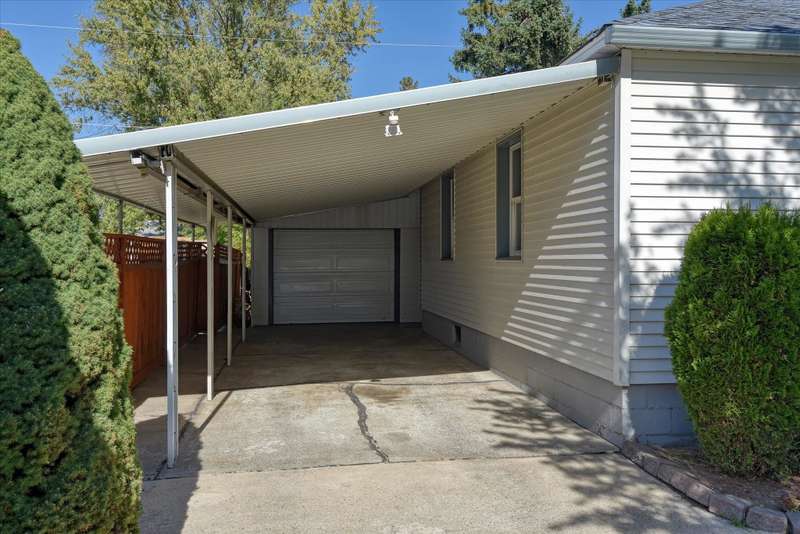 Charming 4 bedroom/1 bath home with lovely landscaping and outdoor patio. The main floor has two bedrooms and bathroom with bright living room and dining room. The quaint kitchen overlooks the backyard. The basement has 2 non-egress bedrooms, plenty of unfinished storage space and a laundry room with washer, dryer and large basin sink. A new furnace was installed in 2019 and was recently serviced, and the central AC keeps the home cool in the warm months. A 50-year roof was installed in 2005. Home has many updates over the years with metal siding, vinyl windows and sprinkler system. The long, paved driveway has a two-car tandem carport and extends into the 1 1/2 car garage. The backyard has additional parking with a paver driveway and alley access. Enjoy evenings in the backyard under the covered patio or any of the 3 outdoor patios spaces!