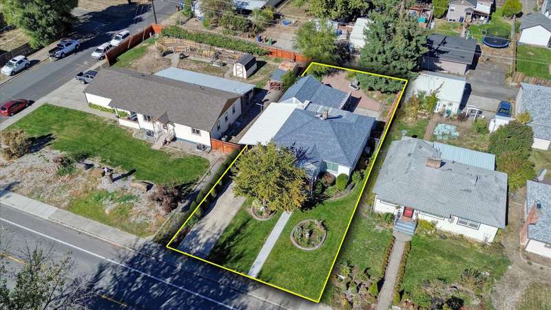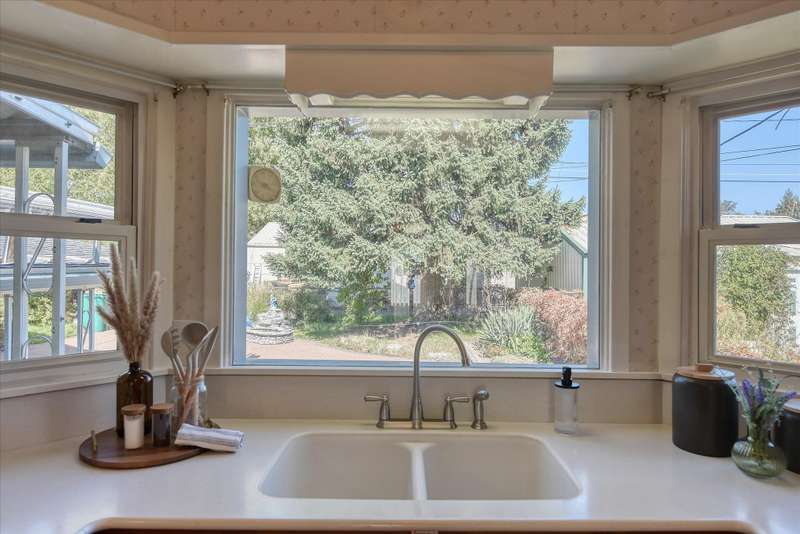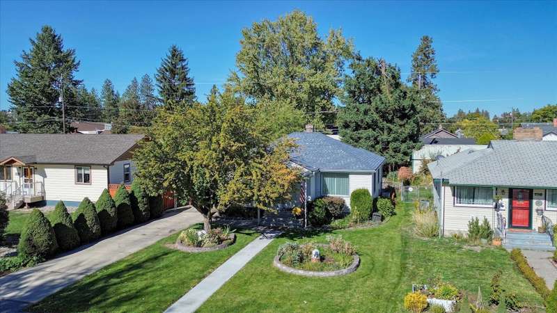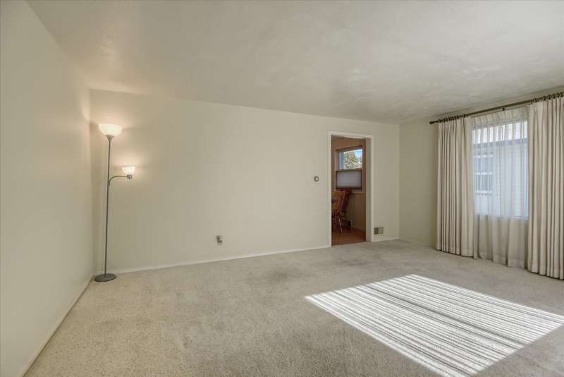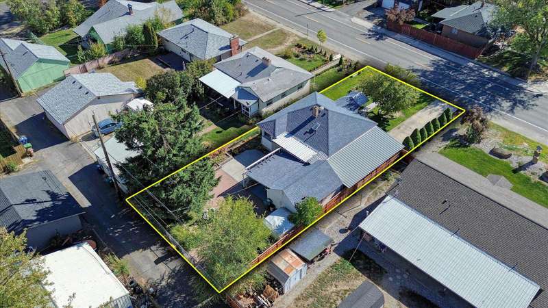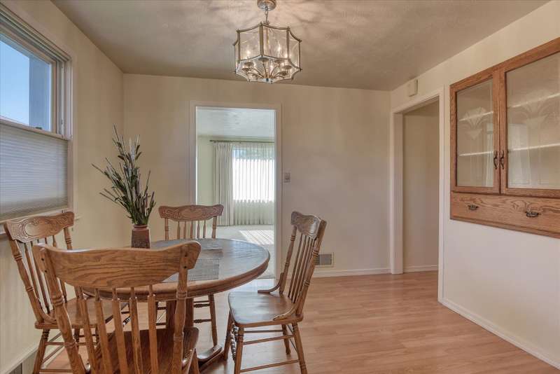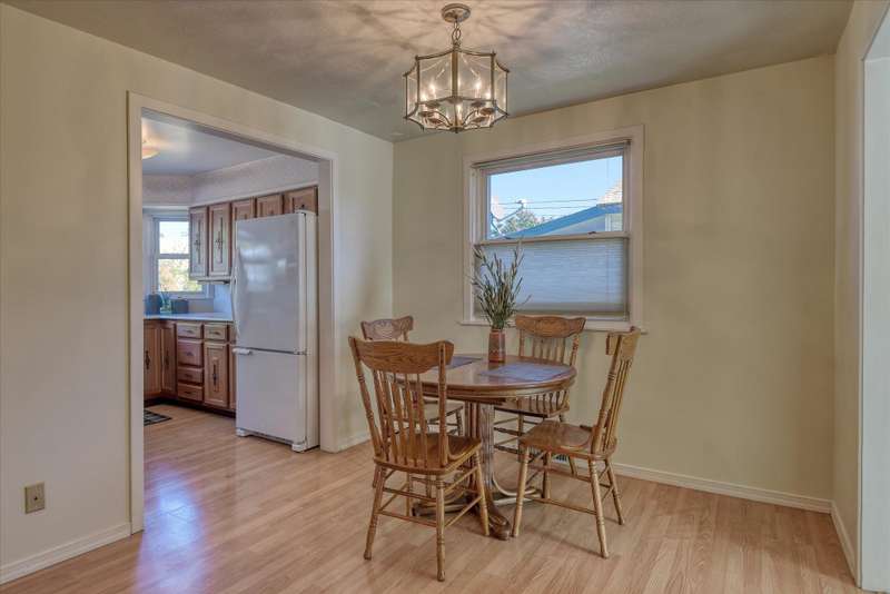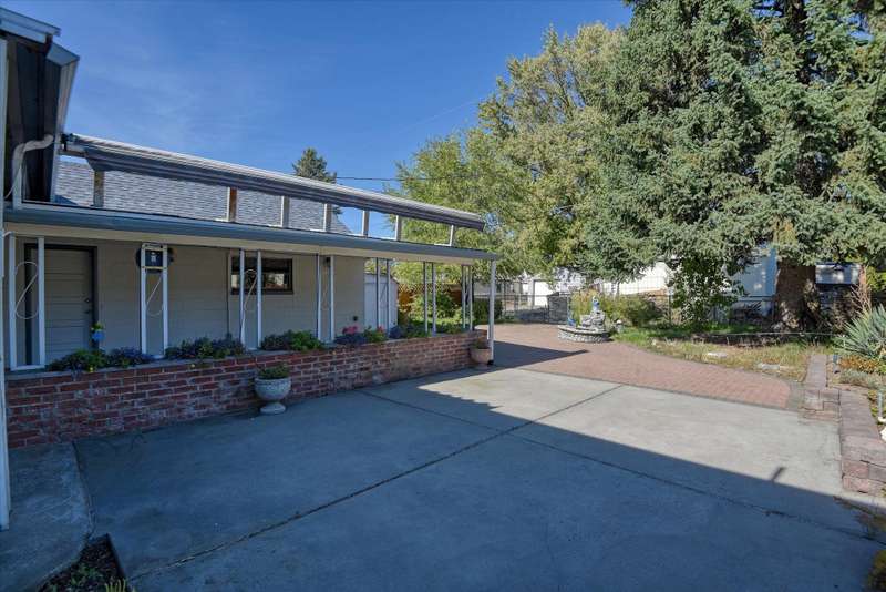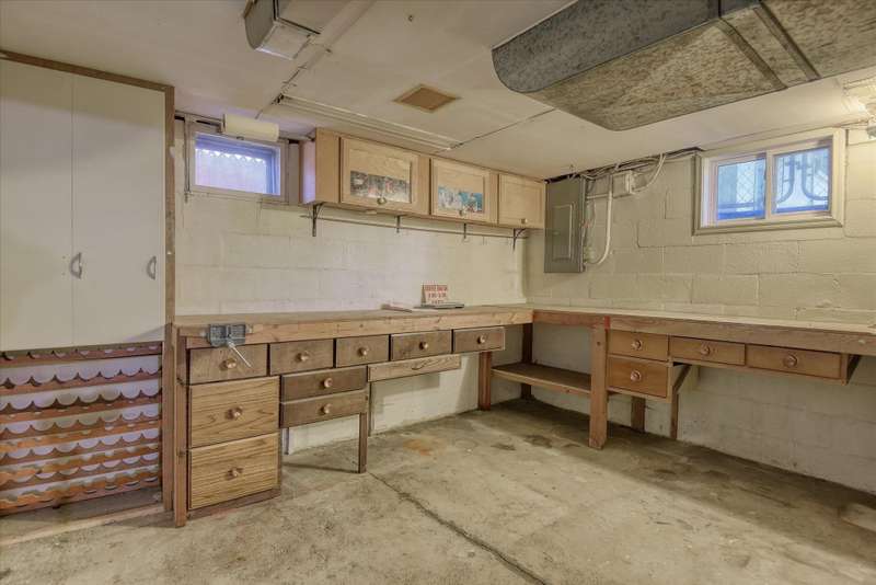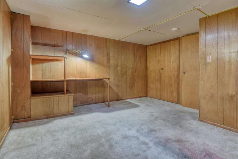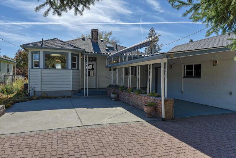 Charming 4 bedroom/1 bath home with lovely landscaping and outdoor patio. The main floor has two bedrooms and bathroom with bright living room and dining room. The quaint kitchen overlooks the backyard. The basement has 2 non-egress bedrooms, plenty of unfinished storage space and a laundry room with washer, dryer and large basin sink. A new furnace was installed in 2019 and was recently serviced, and the central AC keeps the home cool in the warm months. A 50-year roof was installed in 2005. Home has many updates over the years with metal siding, vinyl windows and sprinkler system. The long, paved driveway has a two-car tandem carport and extends into the 1 1/2 car garage. The backyard has additional parking with a paver driveway and alley access. Enjoy evenings in the backyard under the covered patio or any of the 3 outdoor patios spaces!