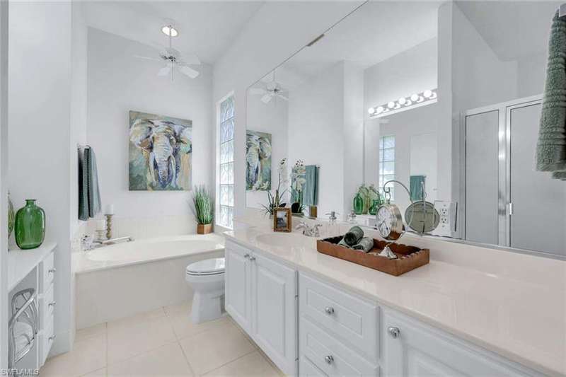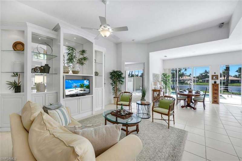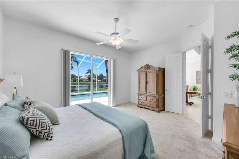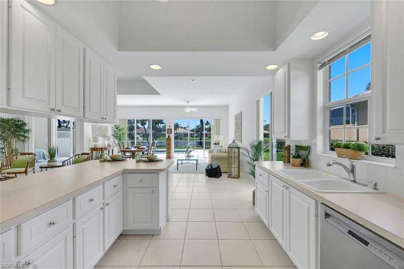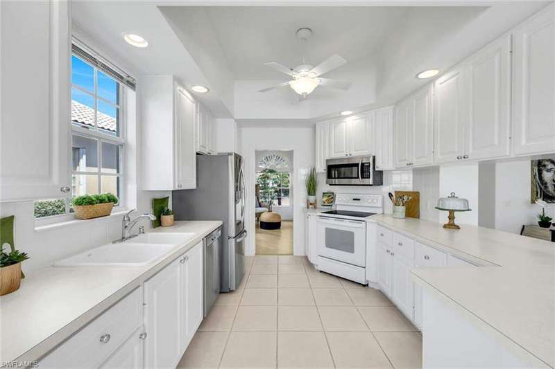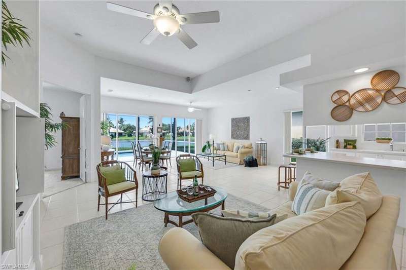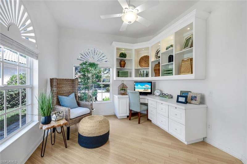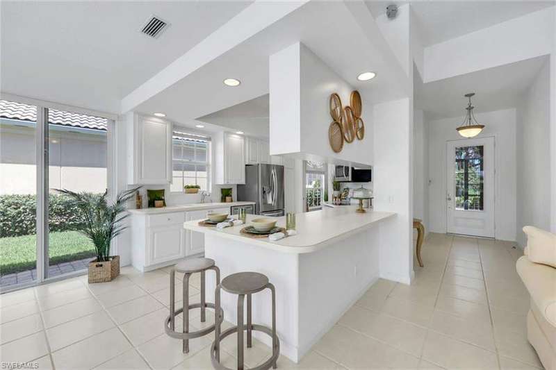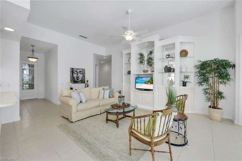 This is the one you've been waiting for! The sought-after Extended Oakmont model in Island Walk offers 2,181 sq. ft. of stylish, low-maintenance living that checks all the boxes. Enjoy peace of mind in this barely-lived-in poured concrete DiVosta home with a new AC (2024), newer roof (2022), newer pool heater (2022), and relax by your private pool overlooking a western-facing lake view-the perfect backdrop for Naples sunsets. Inside, you'll find freshly painted interiors, soaring ceilings, 3 bedrooms plus a cozy den with beautiful built-in office, and 2.5 baths, along with a side-load 2-car garage with refinished flooring. Step outside and you're just minutes from the vibrant Island Walk Town Center with its recently renovated clubhouse (no special assessments!), lap-and resort-style pools, tennis, pickleball, bocce, fitness center, award winning restaurant, gas station, car wash, post office, and salon services. Basic cable, WiFi, lawn care, irrigation water and exterior pest control are all included in your HOA for easy living. Best of all, you're just a short drive to world-class shopping, dining, and the white-sand beaches of Naples.