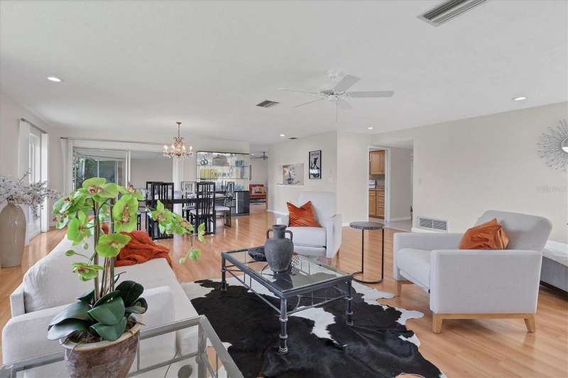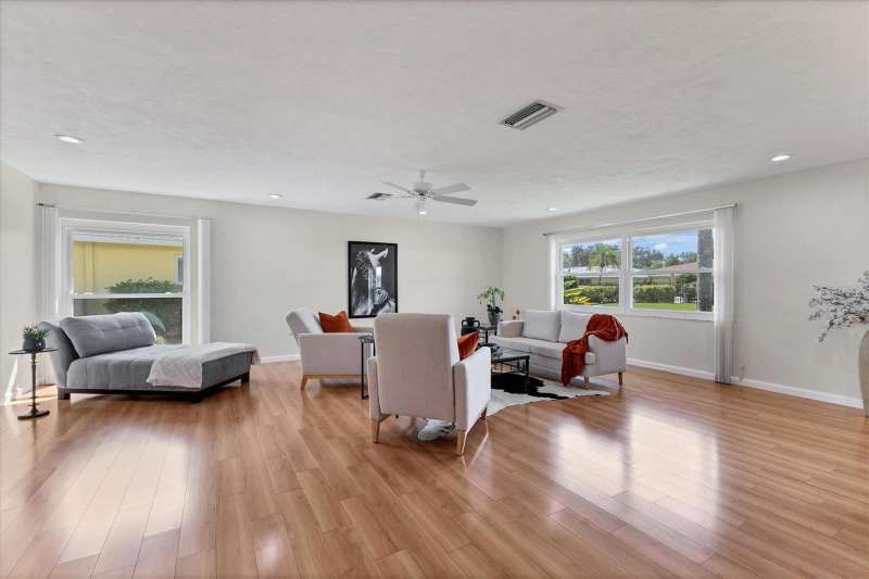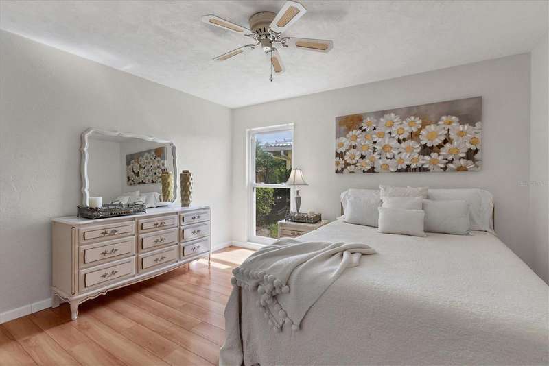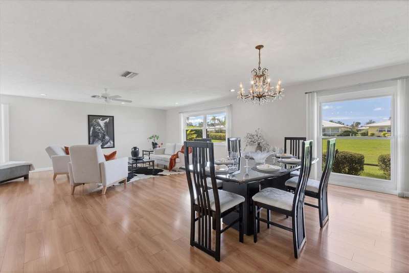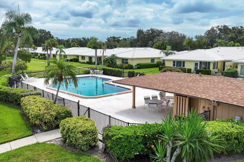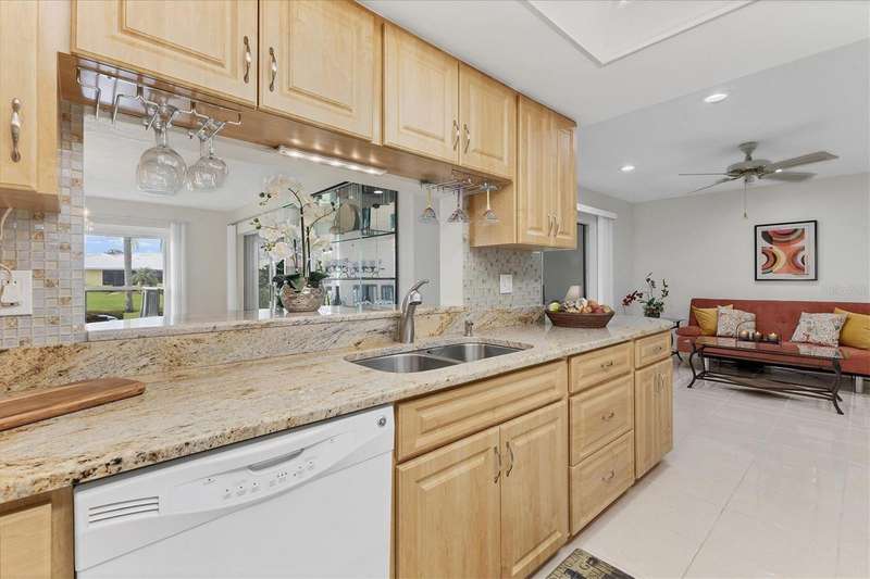 Welcome to Village Green – a gem in Sarasota’s sought-after 55+ community! This spacious and beautifully maintained 2-bedroom, 2-bath villa offers the perfect blend of comfort, convenience, and style. Whether you're looking for a sunny winter escape or a full-time residence, this move-in-ready home provides over 1,800 square feet of air-conditioned living space to enjoy year-round. Step through the foyer into a bright, open layout featuring a freshly painted interior in a light, refreshing tone that enhances the natural light streaming throughout. You'll immediately notice the shine of ceramic tile flooring and the attractive laminate flooring that flows through the home, adding warmth and durability. The large living and dining areas provide ample space for entertaining or simply relaxing, and the family room adjacent to the kitchen offers flexibility—use it for casual dining, a TV room, or office space. The family room opens to an enclosed lanai with peaceful views of the tropical courtyard and direct access to the heated community pool. This versatile lanai extends your living area and invites indoor-outdoor living. The kitchen has been tastefully updated with granite countertops, modern appliances, and custom cabinetry, including a built-in pantry. Just off the kitchen is an oversized laundry room, offering extra storage space. UPGRADES to this lovely villa include: Tile roof replaced in 2016 * A/C system installed in 2012 * Six hurricane impact windows added in 2010 * New front door * Ceramic flooring restored * Laundry room shelving added * Both bathrooms renovated with new vanities, stone countertops, mirrors, and fixtures * Updated lighting throughout, including modern recessed lighting * Newer garage door and opener for added security and convenience. The two-car garage and interior laundry room are added perks that make daily living more convenient. Plus, the exterior maintenance - including landscaping and exterior paint - is covered by a reasonable HOA fee, along with basic cable and building insurance. Village Green Section 16 is an intimate and well-managed enclave of just 26 homes. Residents enjoy a quiet, park-like setting with mature tropical landscaping, private walking paths, and a heated pool kept at a comfortable 85 degrees year-round. Outdoor enthusiasts will love the close proximity to the Legacy Trail, now extended and accessible just under a mile away. Golfers will appreciate the nearby courses just minutes from your door. You're also a short drive from Sarasota’s vibrant downtown, the world-famous Siesta Key Beach, premier shopping, dining, the ever-growing UTC Mall area, and top-rated medical facilities including Doctors Hospital and Sarasota Memorial. Tucked away on a peaceful street with no through traffic, this home offers the Florida lifestyle you’ve been dreaming of. Come see it today and make it yours!