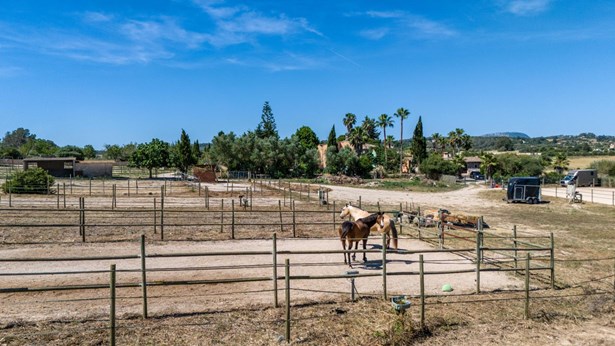 Equestrian estate with tourist license located in Montuïri, in the heart of Mallorca, with excellent connection to the Manacor road, just 20 minutes from Palma and 15 minutes from the airport. The area offers a natural, peaceful, and well-connected environment, ideal for those seeking quality of life, investment opportunities, or to develop a tourist or equestrian project. Nearby are traditional restaurants, rural routes, and easy access to essential services.~The estate is set on a 34,000 m² plot and features a large swimming pool, palm gardens, terraces, porches, a vegetable garden, parking area, and outdoor event space. Inside, it includes a main house, five fully equipped double apartments with kitchen, bathroom, and terrace, as well as four double rooms with private bathrooms, a meeting room, and two additional rooms for staff or caretakers.~The active holiday rental license allows accommodation for up to 12 guests, and the equestrian facilities can host up to 40 horses thanks to its stables, riding areas, tracks, and shaded zones among trees. The property is fully legalized and operational, equipped with electricity, diesel heating, and a water survey project. It offers multiple uses such as riding school, retreats, trainings, events, or tourist accommodation.~There is also the possibility of expanding the property with adjacent plots available for sale.