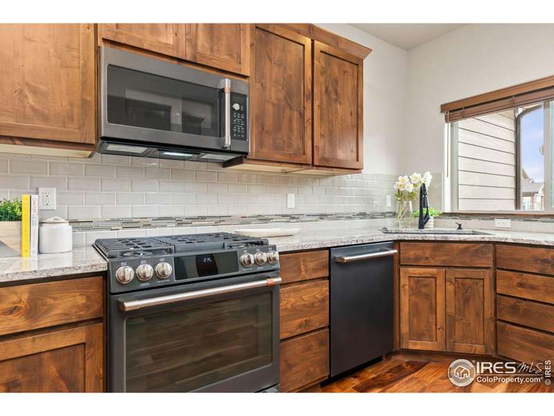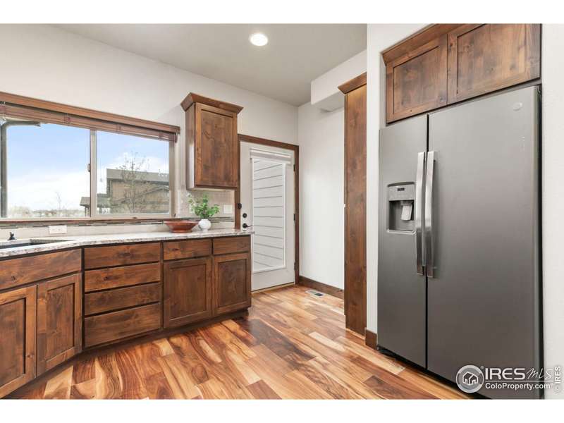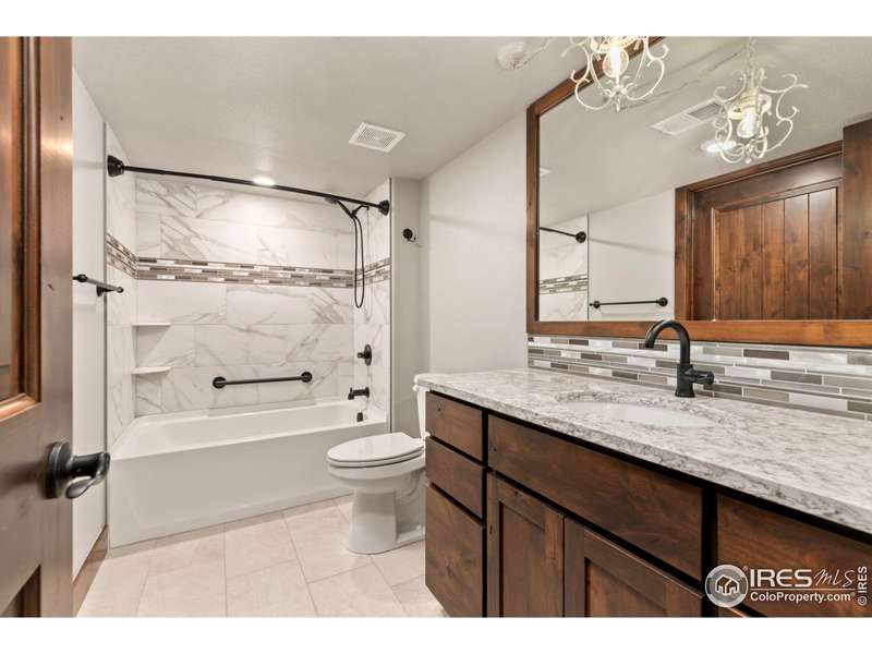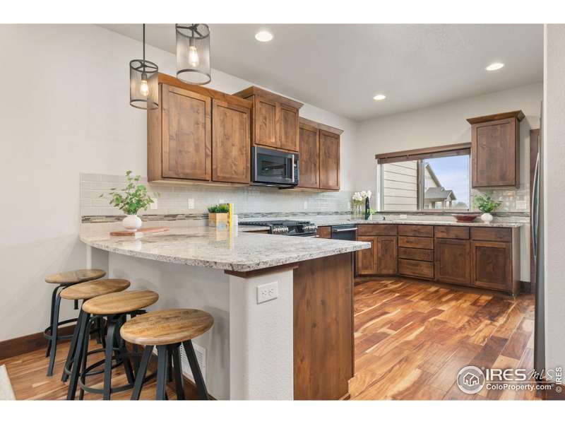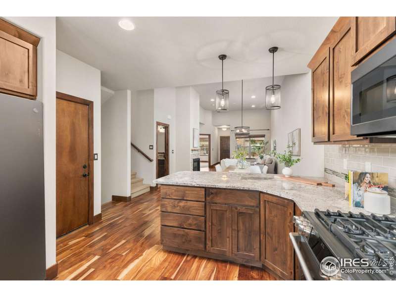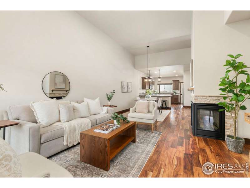 Discover effortless luxury in this beautifully crafted Seven Lakes townhome. From the moment you enter, soaring vaulted ceilings, a cozy gas fireplace, and rich engineered hardwoods set the tone for refined living. The gourmet kitchen is a true centerpiece, showcasing a granite island, stainless steel appliances, and custom cabinetry. The main-level primary suite offers comfort and convenience with a walk-in closet, dual vanity, and large shower-perfect for single-level living.Upstairs, a spacious bedroom with ensuite bath and walk-in closet provides privacy for guests. The finished basement expands your options with a rec room, bedroom, and full bath. Enjoy the outdoors just steps away on nearby walking and biking trails, or relax knowing the HOA takes care of lawn care, snow removal, and exterior maintenance. No metro district means added value!