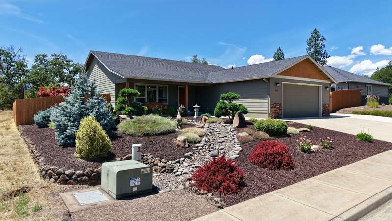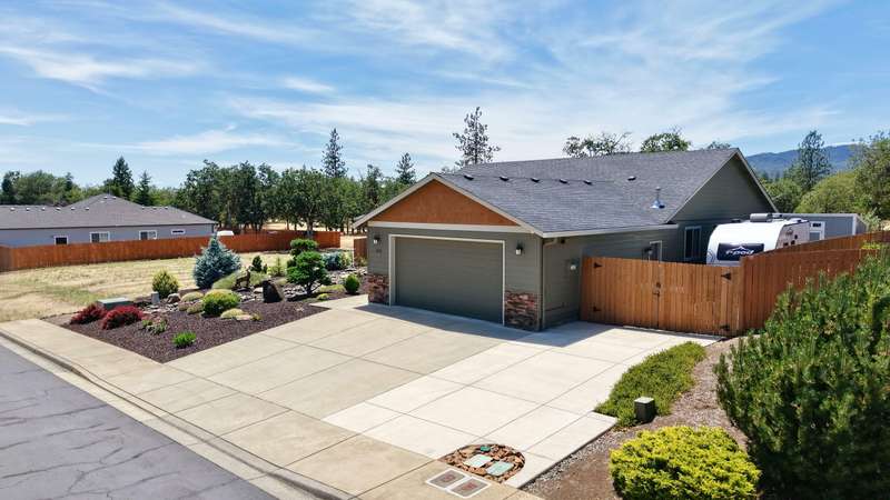 ??????? ??? ?????????! Experience quality and comfort in this beautifully crafted 3-bedroom, 2-bathroom home built in 2015 by Gifford Homes LLC. Offering 1,644 sq ft of refined living space, this residence features vaulted ceilings, granite countertops, custom cabinetry, a gas stove, pantry, and included refrigerator and reverse osmosis drinking water system. The elegant primary suite includes a walk-in closet and dual sinks. Additional highlights include a dedicated laundry room with washer and dryer, relaxing hot tub, sun blinds and an attached 30x24 finished garage. Outside, enjoy the fully fenced, level .23-acre lot with gated RV parking and a 10x12 Tuff Shed. Located near the scenic Rogue River with endless outdoor recreation nearby. HOA is $500/year and includes access to well-kept common areas. Connected to public sewer and a reliable Hiland Water, this home blends upscale finishes with convenience and outdoor living.