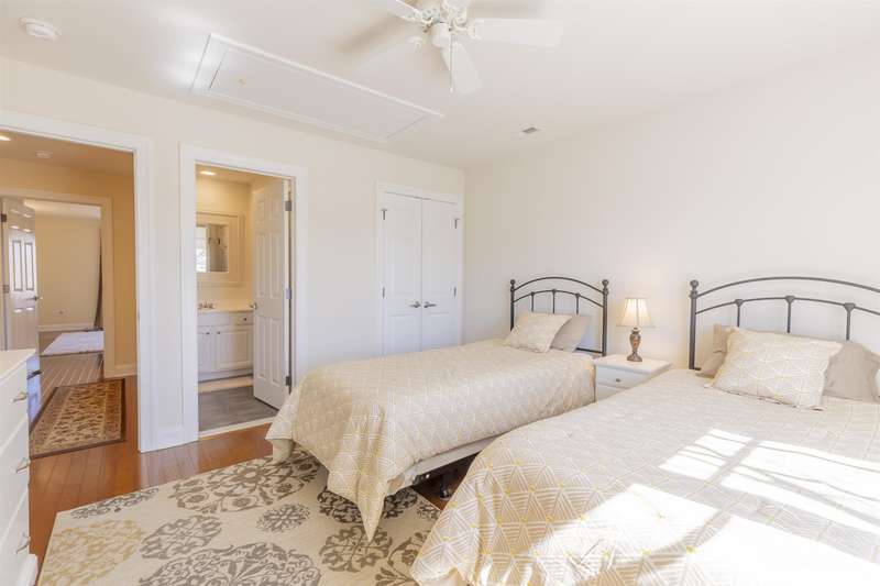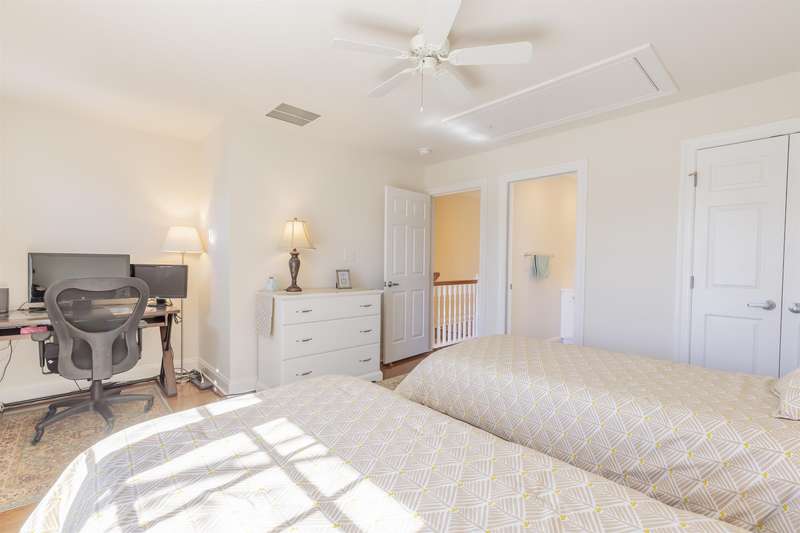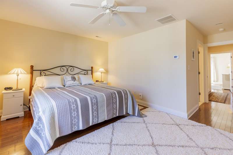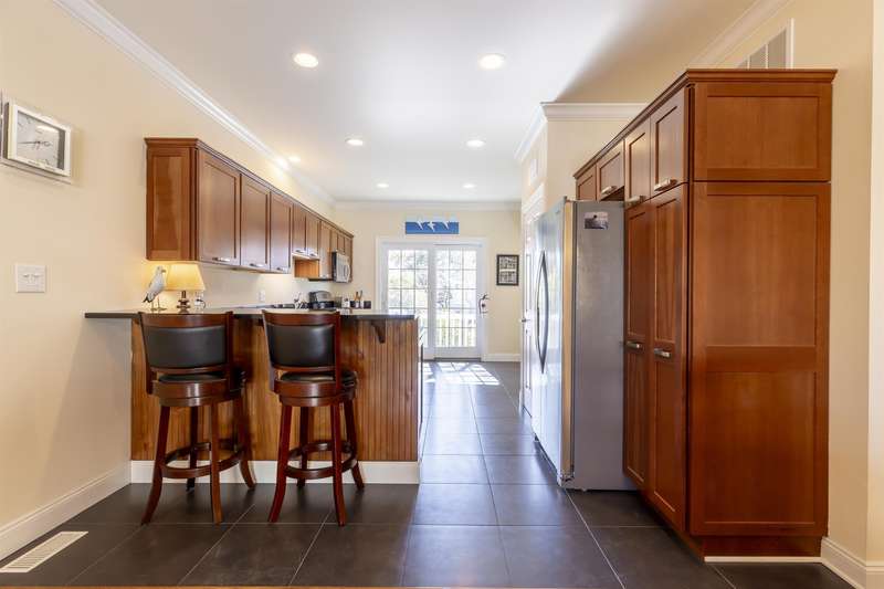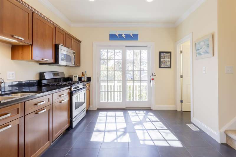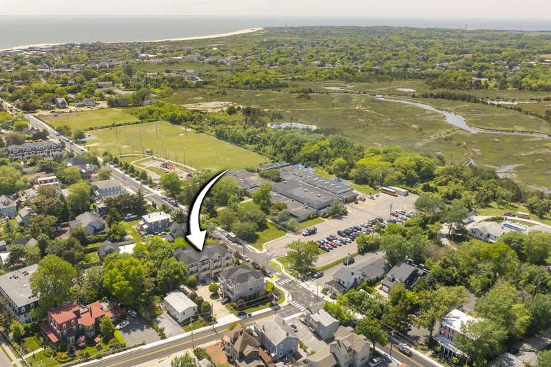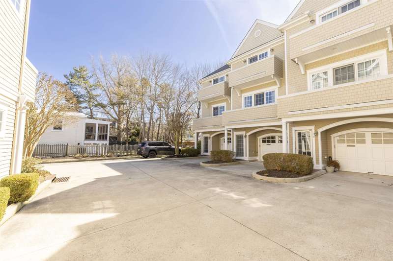 This exceptional 2-bedroom, 2.5-bath townhouse offers the perfect blend of comfort, style, and functionality. One of just six exclusive units in Quinn's Court, this home is ideally located within walking distance to the town center and a short bike ride to the beach. Built in 2004 by WKR Construction Company, it remains in like-new condition, showcasing superior craftsmanship and thoughtful design. The main level features an inviting open floor plan with a modern kitchen, quartz countertops, stainless steel appliances, a gas range, and a chic slate floor. The dining and living areas are enhanced by beautiful hardwood floors and a cozy gas fireplace, perfect for relaxing evenings. A powder room and 2 private decks complete this level, providing additional space for indoor-outdoor living. Upstairs, the primary suite boasts stylish decor, an en-suite bath, and a private deck for morning coffee or evening unwinding. A second spacious bedroom, also with a private deck, and a full bath round out the upper level. The ground level offers a versatile oversized garage, large enough for your vehicle and an additional hangout or game area for the family. Additional highlights include an outdoor shower for post-beach refreshment, professionally landscaped surroundings that enhance the charm of the community, and recent association upgrades, including new roofs for peace of mind. This is a rare opportunity to own a meticulously maintained townhouse in a prime location-ideal for year-round living or a perfect beach getaway!