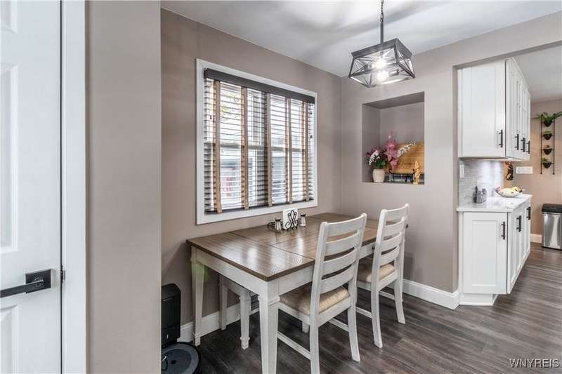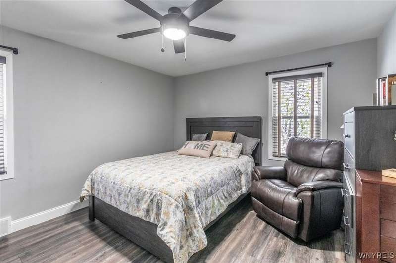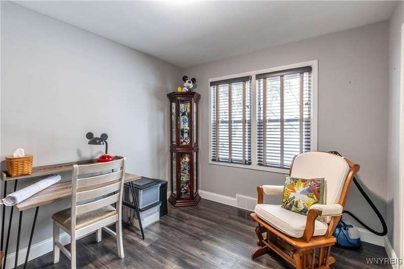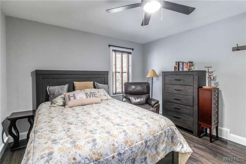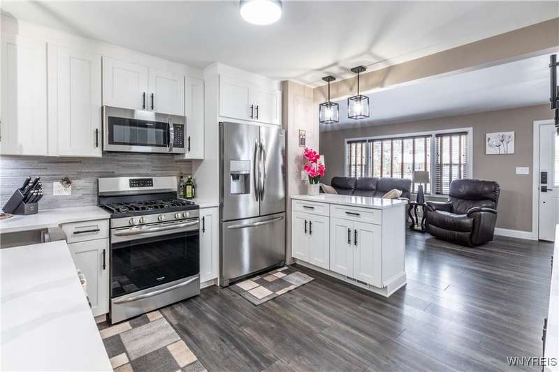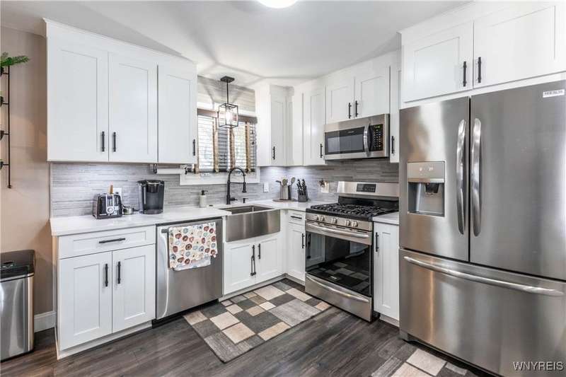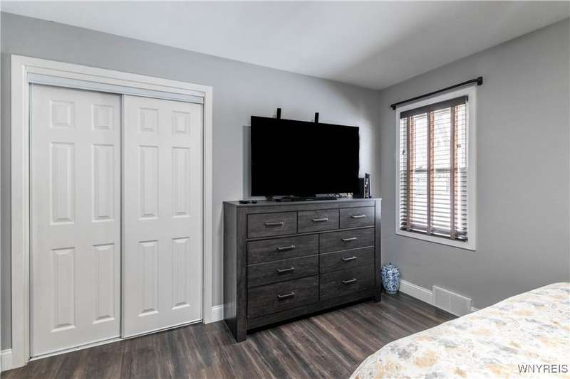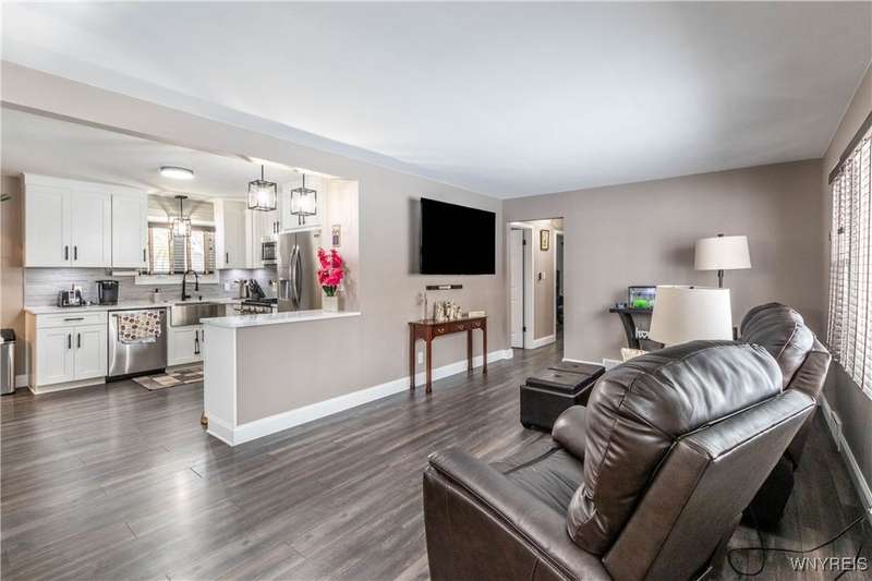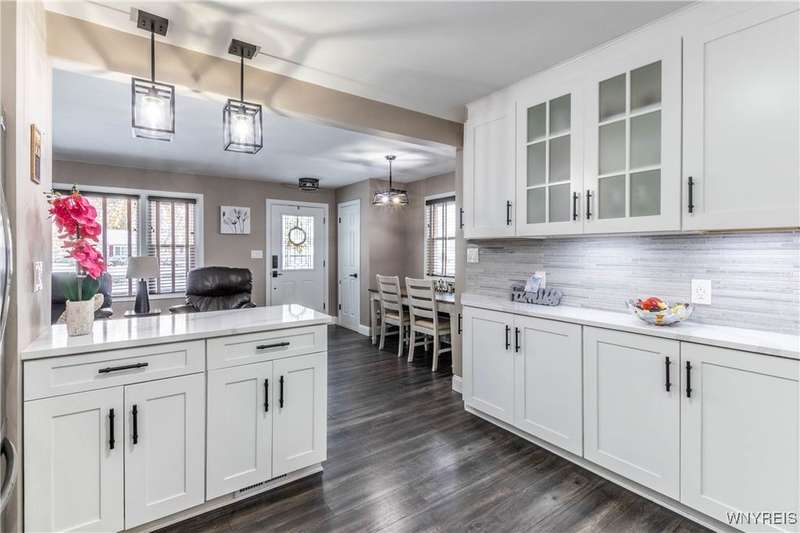 Wow! Beautifully maintained ranch set back from the road on a spacious lot with great curb appeal. The exterior boasts an expanded driveway, refreshed landscaping, and a professionally painted finish. The garage is fully drywalled with a glass block window and upgraded electric for a car charger. New interior and exterior doors throughout. The backyard has been professionally enhanced with tree removal and features a concrete patio?perfect for barbecues and outdoor entertaining in a park-like setting with an electric fence and collar. A large shed on a concrete pad (2021) offers plenty of storage. Inside, pride of ownership shows throughout with a fully renovated kitchen featuring quartz countertops, new flooring, drywall, cabinetry, and an open flow to the living area. Updated fixtures and lighting add a modern touch. The bathroom includes a new surround, smart shower, modern vanity, and sliding barn door. Three spacious bedrooms, one currently used as an office. Basement features higher ceilings, newer hot water tank (2021), New Heat pump, furnace and AC (2024), glass block windows, added outlets, sump pump backup, and gas line. You will not want to miss this one. Offers will be reviewed on Monday Nov. 24th at 12:00pm. Showings start at the open house on Saturday Nov. 15th at 11:00am
