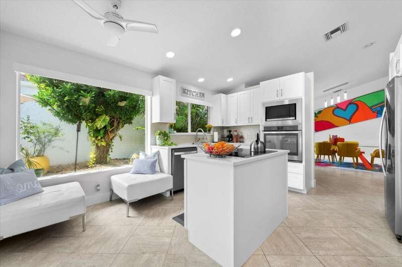 One-of-a-Kind Custom Home in Indian Spring - A Must See! This stunning single-story home offers over 2,200 sq. ft. of living space with an open-concept layout and custom features throughout. Enjoy a modern kitchen with quartz countertops and stainless steel appliances, spacious walk-in closets with built-in shelving, and a large media room perfect for entertaining. Step outside to a newly paved patio and beautifully landscaped grounds. Additional highlights include a 2-car tiled garage, 2-zone A/C, and a half bath for added convenience. The home sits on a private end lot in a 24/7 manned guard-gated 55+ community with NO mandatory membership and very low HOA fees. Pets are welcome! Enjoy the resort-style lifestyle with walking distance to the community pool and main Indian Spring!