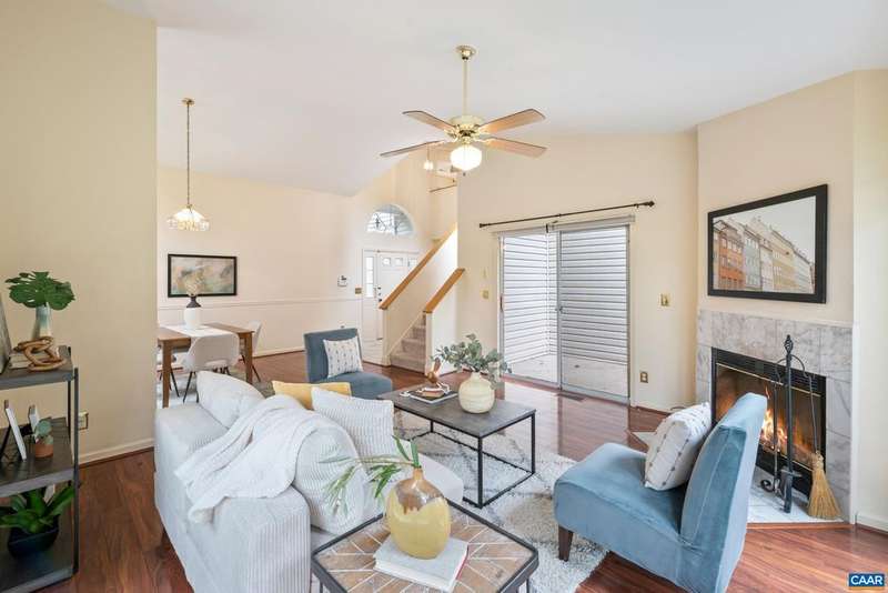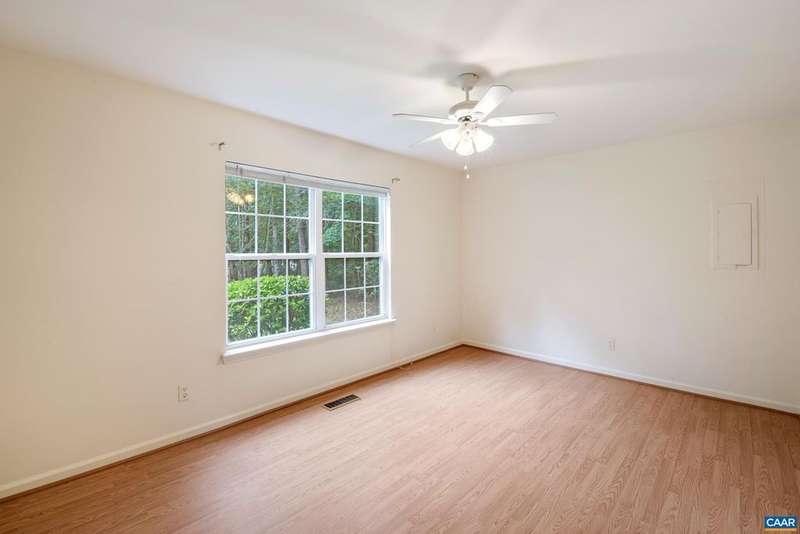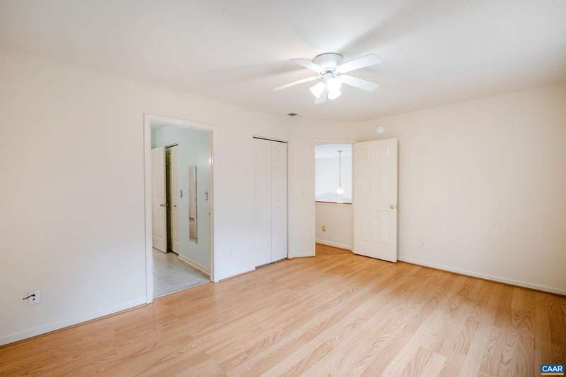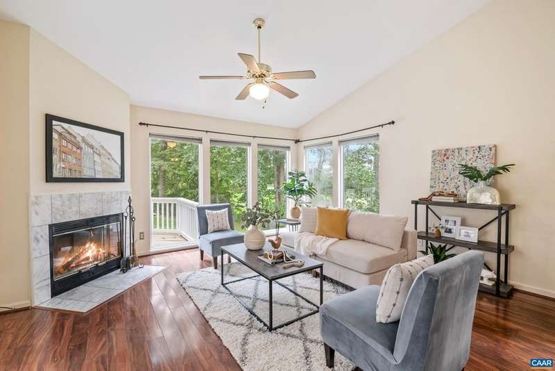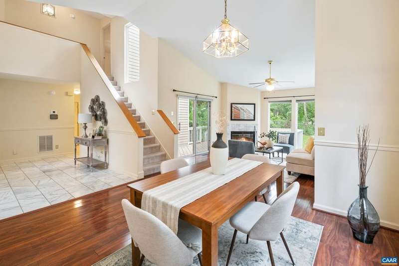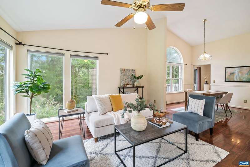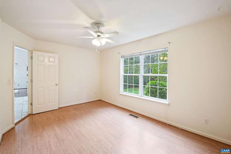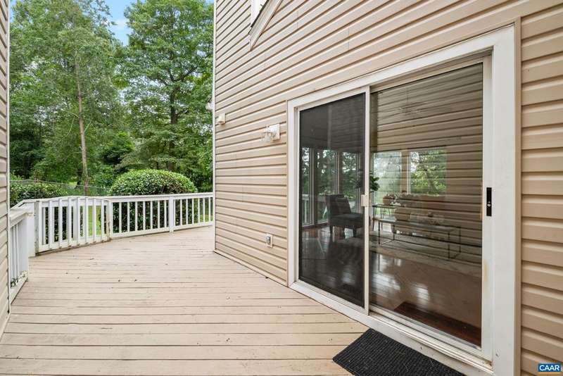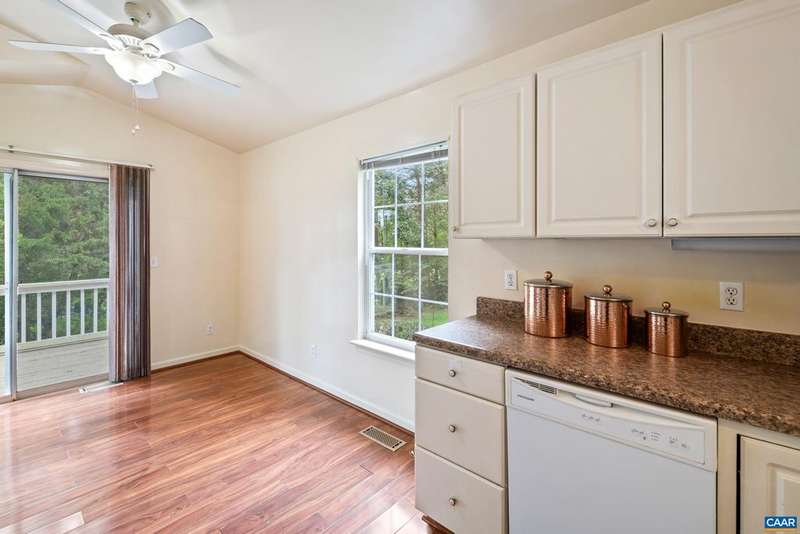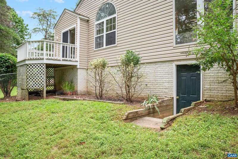 WHAT AN OPPORTUNITY! Fabulous home PRICED TO SELL in popular Cross Creek, just 9 minutes to NGIC and 12 minutes to Hollymead Towncenter amenities. Enjoy a PRIVATE 3/4 acre parcel, big front yard and FENCED back yard with plenty of room to garden and play. A welcoming foyer leads to a large dining/living area with cathedral ceiling, COZY FIREPLACE and access to deck and back yard. LOTS OF LIGHT! EAT-IN KITCHEN opens to the perfect grilling deck! SPACIOUS bedrooms, all with ceiling fans, and a main level primary BR w/ ensuite bath and access to laundry. A second main level BR might make a GREAT HOME OFFICE! Two more BRs upstairs, one of which could be a second primary. They share a large bath and walk-in-closet. 2023 HVAC. Roof completed partially in 2013, second half in 2019. See appliance brands/ages in the listing docs. Central vac. Incredible outdoor spaces and large garden shed. At over 1900sf, the home is priced to accommodate needed cosmetic updates. Could use fresh carpet but there's not much of it: just staircase and one BR. With a fresh coat of paint, some updating & powerwashing of exterior, this home will sparkle! Incredible value! NO HOA