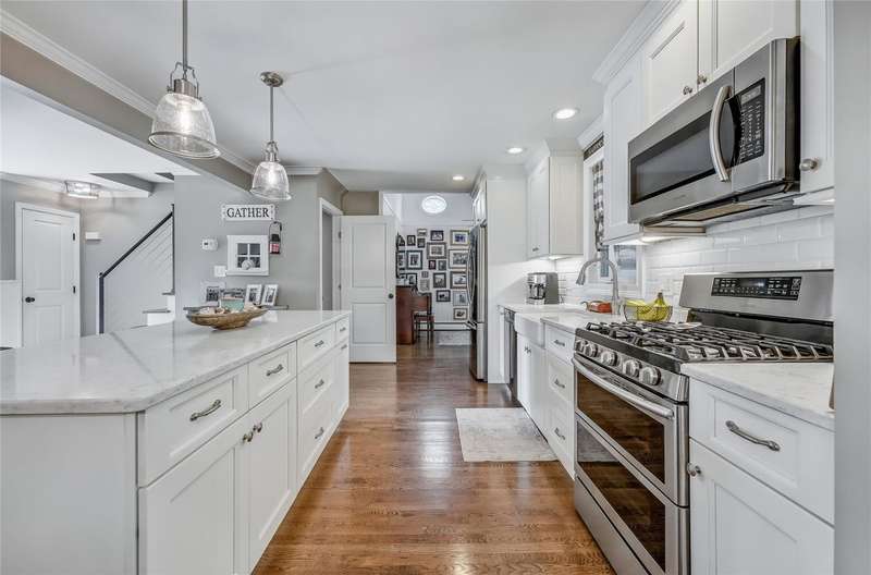 Step inside this stunning 4-bedroom, 2.5-bath Colonial located in the highly sought-after Smithtown area. This beautifully maintained home offers all the amenities today's buyer is looking for. Entertain with ease in the open-concept floor plan, and enjoy preparing meals in the chef's kitchen while staying connected with your guests. A first-floor bedroom and full bath provide the perfect setup for hosting overnight guests or extended family. Cozy up by the gas fireplace on chilly winter evenings, adding warmth and ambiance to your living space. The basement creates even move space to enjoy. Step outside to your very own staycation paradise - the backyard is ideal for summer barbecues, relaxation, and making lasting memories. Upstairs, the spacious bedrooms provide a peaceful retreat - perfect for unwinding after a long day. The additional highlightsincludes: Solar panelsfor energy efficency, beautifullyupdated bathrooms, Gleaming hardwood floors, updated roof, siding, electric, decking,pavers, & a young saltwater headed pool. This highlights makes this home stand out even more.