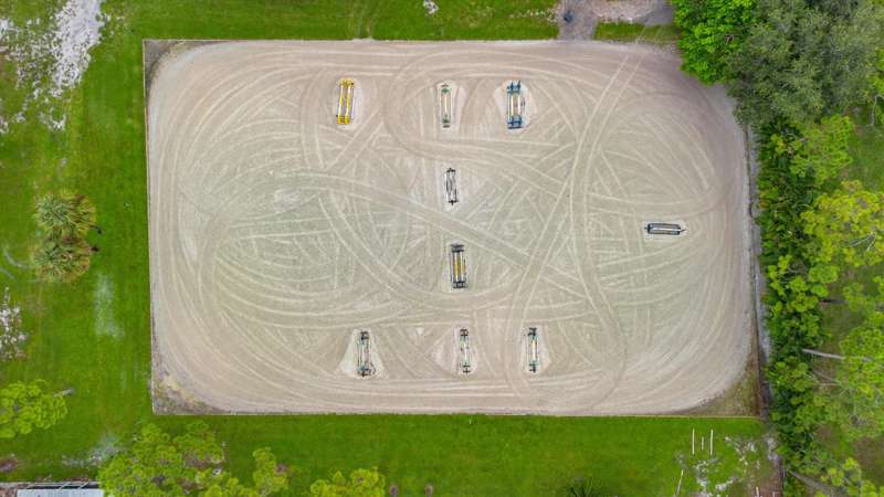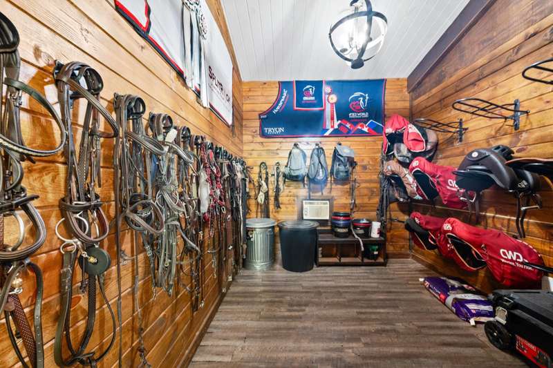 Fabulous 5-acre equestrian property. Including a 4-bedroom home, 16 stalls, 10 paddocks, and large GGT arena located in the highly desirable gated community of Deer Run! This turn-key property is made by a Five Star Builder whom designed a newer 12-stall center-aisle barn with: tack room, laundry/feed room, new office/lounge with a full bathroom. The barn amenities are complete with air-conditioning. The 130x200 All Weather arena features premium GGT footing and instant drainage for riding rain or shine. The arena and all 10 paddocks are fully irrigated. The back of the property has an additional 4-stall shed-row style barn with an oversized foaling stall...