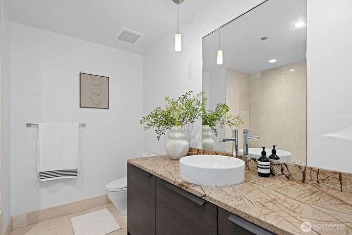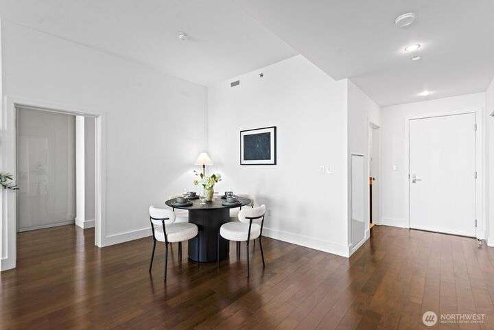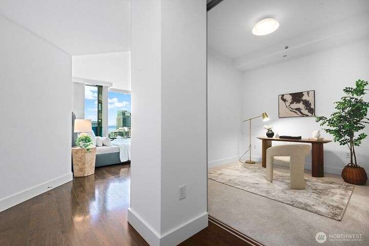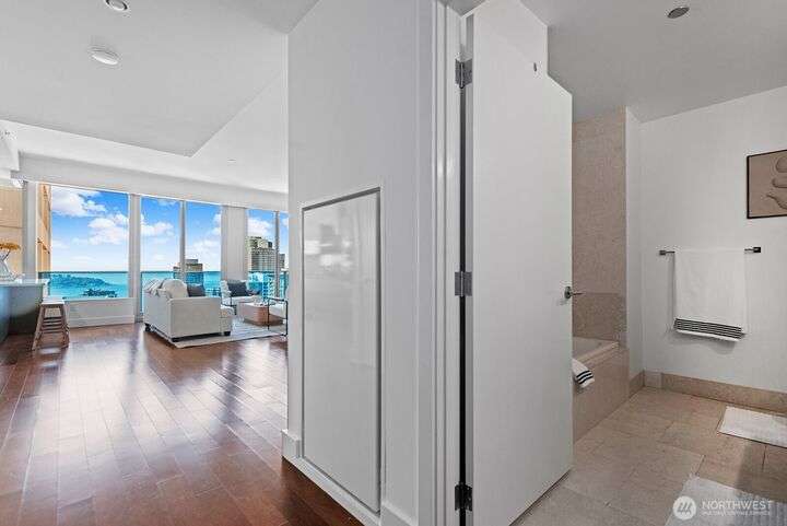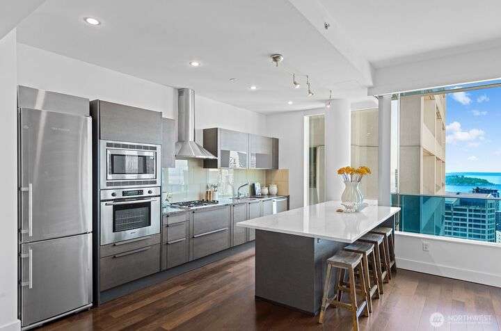Luxury Seattle condo living at its finest. Rare, custom-designed 35th-floor residence above the Hyatt with sweeping views of Puget Sound, Olympic Mountains & city sunsets. This 1 bedroom + flex room, 2 bath home features an open floor plan, sleek chef’s kitchen, dining area & private terrace perfect for entertaining. Primary suite offers a spa-inspired marble bath & custom closet system. Includes 2 secure parking spaces (1 EV-Charger), 2 storage units & access to premium high-rise amenities. Steps to Pike Place Market, fine dining, shops, theaters & light rail—experience the best of downtown Seattle luxury living.
