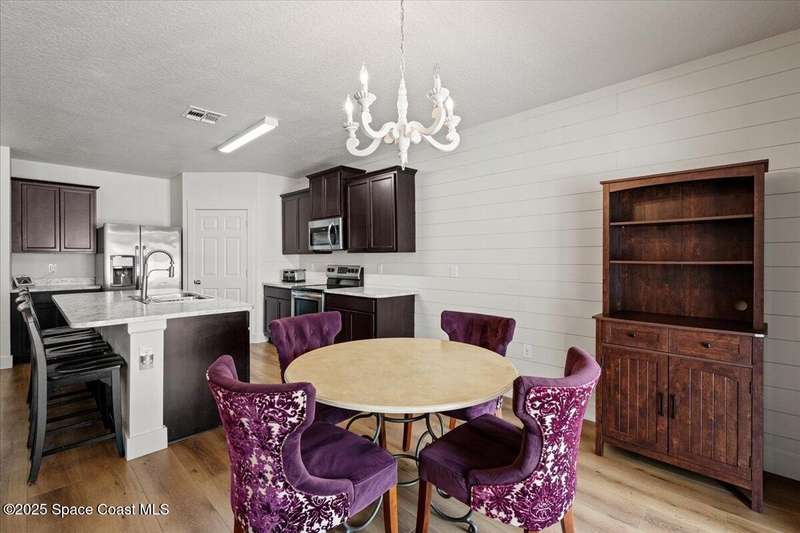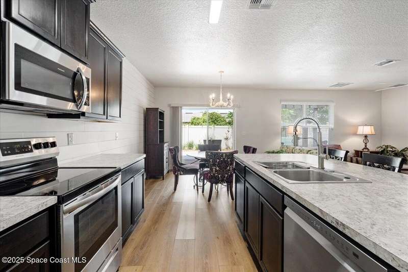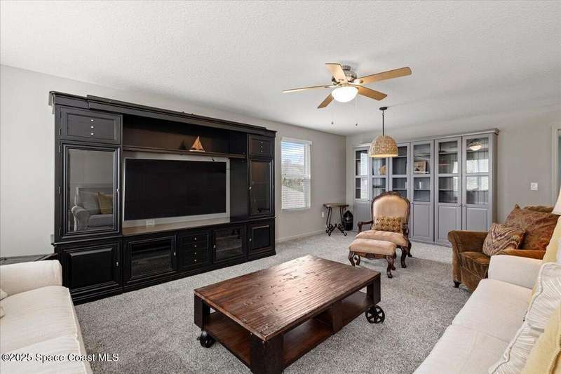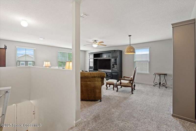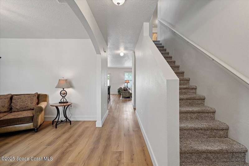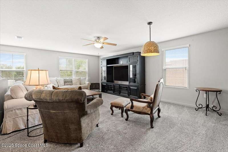 Spacious and Cozy! This beautifully updated 5 bed, 2.5 bath home offers room to spread out with two generous living areas-one up, one down-perfect for relaxing or entertaining. The open-concept kitchen features a large island, bar seating, and flows seamlessly into the living space. Freshly painted inside and out, this corner-lot gem includes new solar panels, ADT security, and irrigation. With 5 bedrooms, a front sitting room, and two large living areas, there is space for everything-- a home office, music room, playroom, you name it-something for everyone! Outside, a gas meter is in place, ready for your dream summer kitchen. Located near top-rated schools, shopping, and I-95 for ultimate convenience. A true blend of comfort, style, and future-ready living-you may never want to leave home!