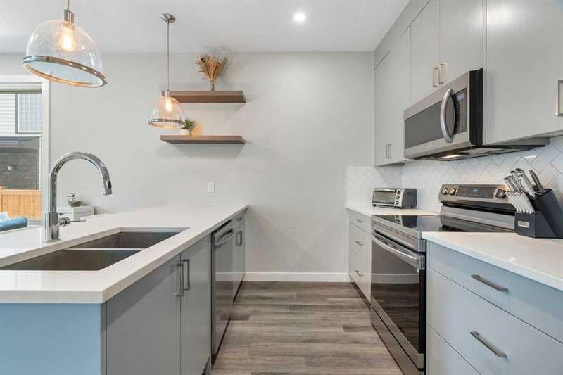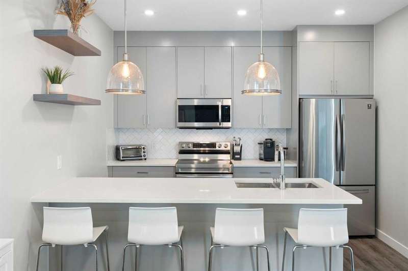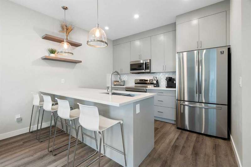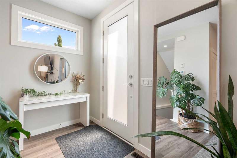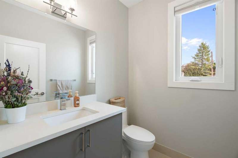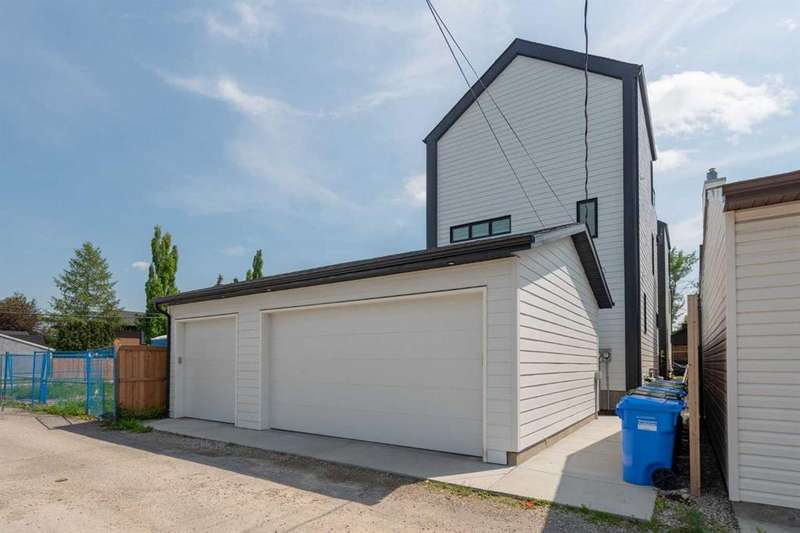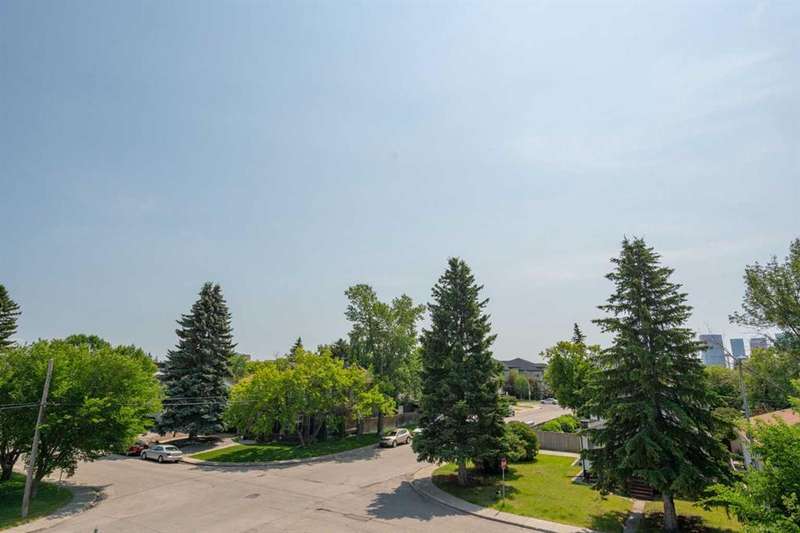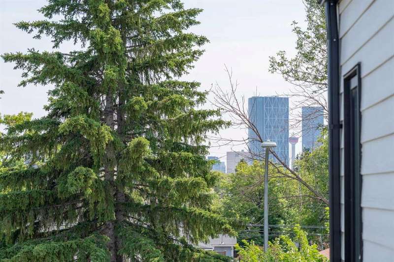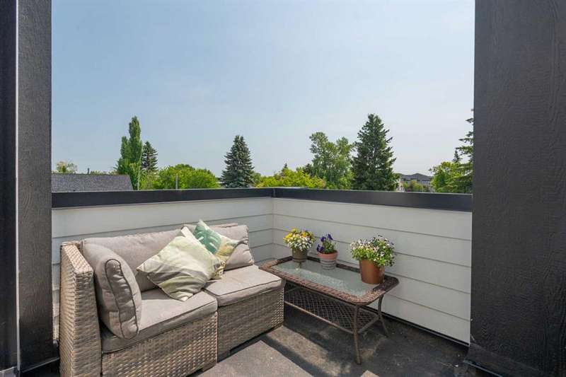 Welcome to this gorgeous and extremely well-maintained townhome, perfectly situated in a quiet triplex in the heart of the highly sought-after community of Tuxedo Park. This stylish and spacious home offers the rare combination of four bedrooms and four full bathrooms—including three private ensuites—as well as a convenient half bath on the main level, ideal for guests and everyday living. Built in 2020 and still under Alberta New Home Warranty, this townhome blends modern luxury with timeless functionality. From the moment you step inside, you're welcomed by soaring 10-foot ceilings and rich, clean finishes—no carpet throughout the entire home for a sleek, low-maintenance lifestyle. The open-concept main floor features quartz countertops, stainless steel appliances, a full pantry, and elegant honeycomb blinds, creating a warm and inviting space for entertaining or simply relaxing at home. The crown jewel of the home is the third-floor private primary retreat. This level is dedicated entirely to your comfort, complete with a full ensuite, a generous bedroom space, and a stunning south-facing balcony with downtown views. It’s the perfect spot to start your day with a quiet coffee or unwind in the evening with the city skyline as your backdrop. For added convenience, a large private storage unit is located just off the balcony—ideal for seasonal items or extra storage. Air conditioning ensures you're comfortable all summer long, and Hardie board siding offers both durability and curb appeal. A shared double garage provides secure parking ,while the location puts you right in the middle of everything—steps from the incredible dining options along Centre Street, the beautiful green spaces of Tuxedo and Monroe Park, Italian markets, grocery stores, transit, and so much more. Whether you're a growing family, professional couple, or savvy investor, this turnkey property offers the perfect blend of space, style, and location. Don’t miss your chance to own a piece of Tuxedo Park charm with all the modern upgrades you’ve been dreaming of.