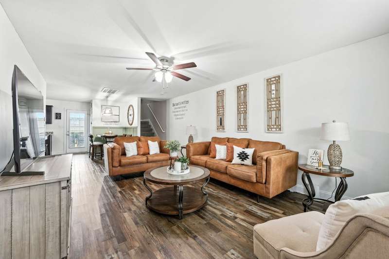 This beautiful home features charming brick front with vinyl siding an offers 3 spacious bedrooms, 2 full baths, and 1 half bath. Inside you will find wood flooring a large great room that opens to a dining area or cozy breakfast nook perfect for entertaining or relaxing with the family THe layout includes a separate laundry room for added convenience and a 2 car garage Step outside to a enjoy. THe covered patio with an added extension ideal for outdoor gatherings A privacy fence surrounds the back yard offering peace and seclusion. Don't miss this move -in ready gem! Its better than New!!!