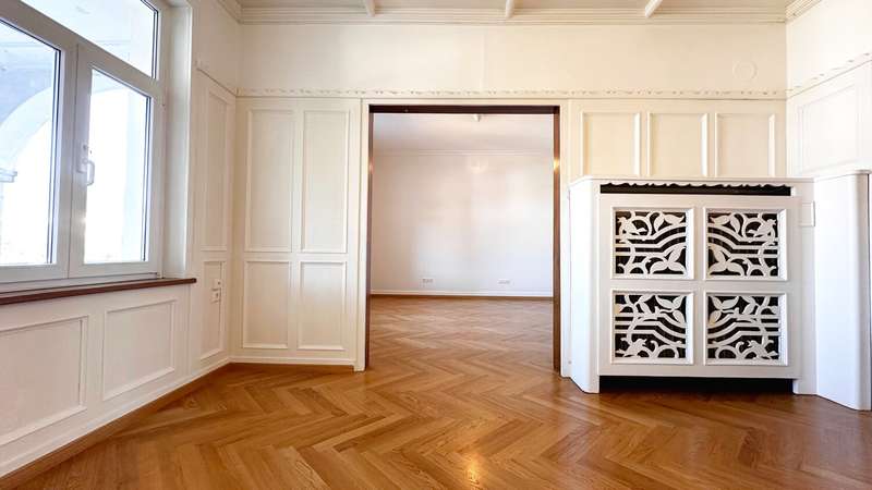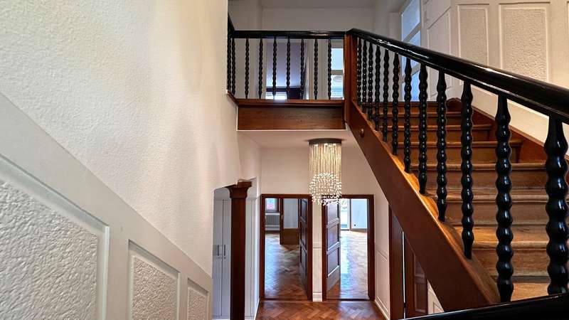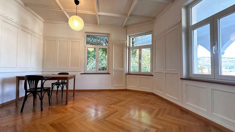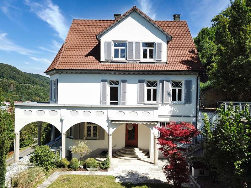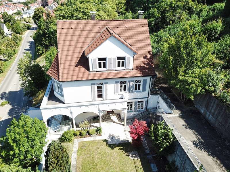 +++ Please understand that we will only answer inquiries with COMPLETE personal data (complete address, phone number and e-mail)! +++ Town villa with special charm for rent in Albstadt-Ebingen This extraordinary town villa awaits you above the rooftops of Albstadt - elevated on a hillside, with fantastic panoramic views over the town and a flair reminiscent of sophisticated times. Built in 1923, the property has been modernized and renovated several times over the years, while always retaining its historic character. Stucco ceilings, high-quality parquet flooring, fine wood paneling and well-kept banisters create an unmistakable living ambience that is rarely found in this form - especially for rent. On the first floor there is a porch, a spacious hallway with a fireplace, two rooms, a kitchen with adjoining pantry and a guest WC. The second floor offers three further rooms, one of which has direct access to a modern daylight bathroom equipped with a shower, bathtub and washbasin. The WC is separately accessible. From the largest room, you have access to a wrap-around balcony from which you can enjoy the view over the city. On the top floor you will find three further rooms, a shower room and a separate WC. The basement, which can be accessed directly via the first floor, offers further practical usable space. There is a boiler room, a cellar room and a utility room from which a small hobby room is accessible. Several terraces invite you to enjoy the hours of sunshine to the full. A sheltered, level garden area offers additional outdoor retreats. The charming garden shed with tiled floor can be used both as a cozy place to relax and as a storage area for garden tools. The garage, which is accessible from the street and can accommodate 2 vehicles parked one behind the other, houses a former vaulted cellar, which is now used as a cellar room. There is also a freight elevator here, which can easily transport your purchases to the basement. From the garage, several steps lead up to the house entrance in a separate, covered staircase. Please note that the house is only accessible via several staircases. The tenant settles the ancillary costs (e.g. electricity, gas, water, waste) directly with the respective utilities or suppliers. Regular care and maintenance of the garden is a prerequisite for renting. This urban villa is a unique rental property for lovers of historical architecture who want to combine the special charm of bygone times with modern living. +++ Please understand that we will only respond to inquiries with COMPLETE personal details (full address, telephone number and e-mail)! +++