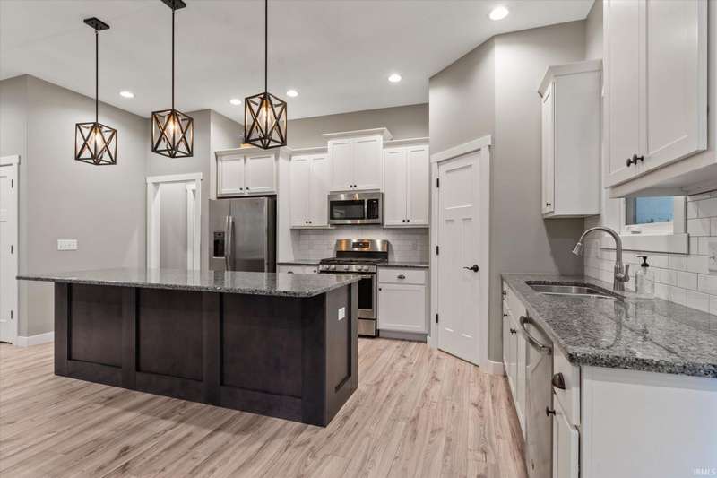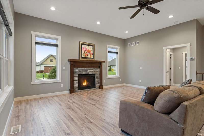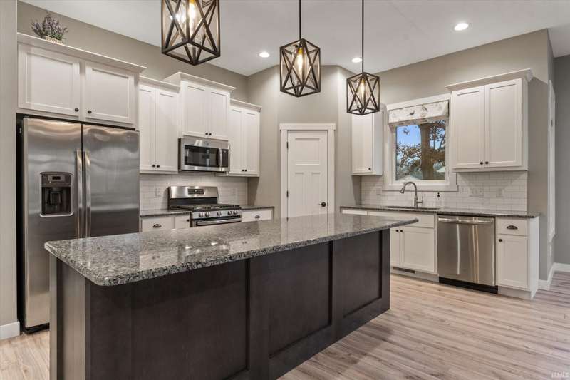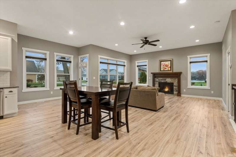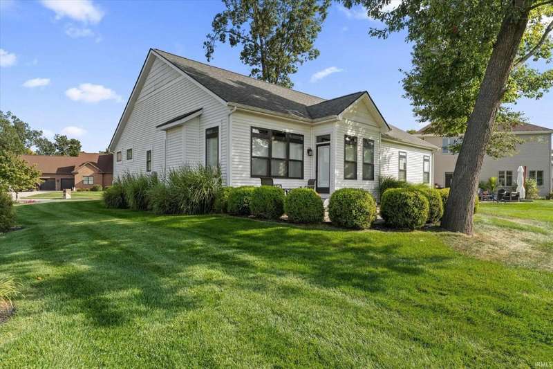 Welcome home to: 1404 River Cove Drive! Welcome to The VILLAS AT RIVER WOOD LANDING, a highly desirable maintenance-free community on the SCENIC south bank of the ST. JOSEPH RIVER within the PHM School District. This beautifully crafted home by Devine Homes by Miller features a sought-after SPLIT-BEDROOM, open-concept floor plan designed for comfortable living and elegant entertaining. Step inside the inviting foyer that flows into a spacious great room highlighted by a gas-log fireplace, 10-foot ceilings, and abundant natural light. The GOURMET KITCHEN is a showstopper, offering an OVERSIZED ISLAND, white shaker cabinetry, GRANITE countertops, and modern finishes that make cooking and hosting a delight. The luxurious primary suite features generous space, a spa-inspired bathroom, and ample closet storage. The FINISHED LOWER LEVEL adds even more living area, including a large family room with wet bar, an additional bedroom and full bathroom, and plenty of storage space. Enjoy the premium finishes throughout, such as engineered hardwood flooring, tiled bathrooms, and a craftsman trim package that showcases quality and style. Need extra garage storage this 23' x 37' oversized 2-car garage and MAIN-LEVEL LAUNDRY ROOM for convenience will be exactly what you need! This home truly feels better than new construction with custom blinds with beautiful RIVER VIEWS and maintenance-free living.