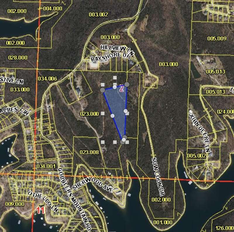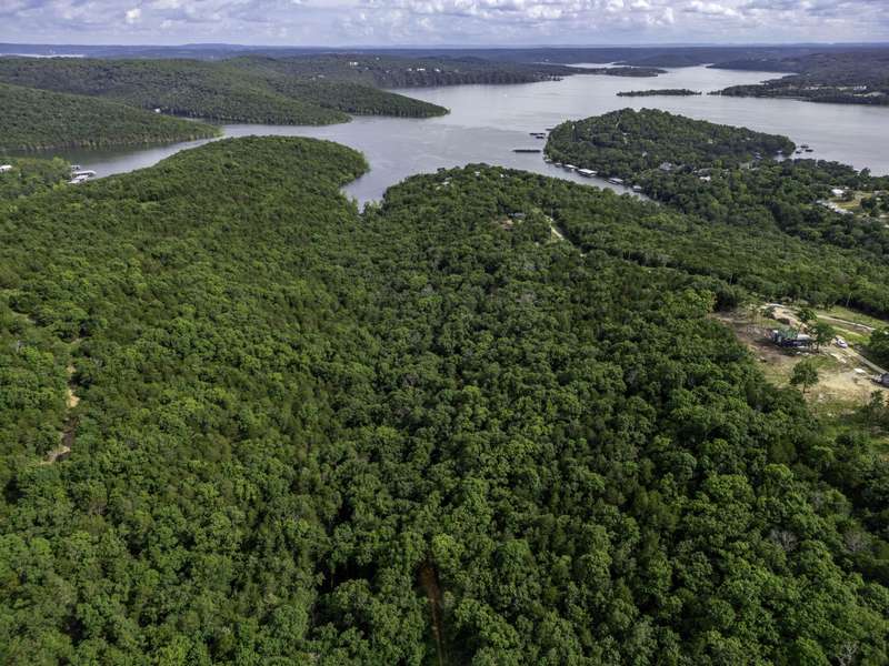 Chance to own 10.62 +/- acres of mature forested lake FRONT property, with cove access and a minuscule tax bill. 2023 taxes on a much larger parcel was only $29.35 for County real estate tax! Zoned Agricultural. Spectacular lake views of Table Rock at the Main Chanel, close to Kimberling City Bridge. Multiple build sites with lake views. Survey after contract will determine exact legal description. Advertised lot lines are estimated.