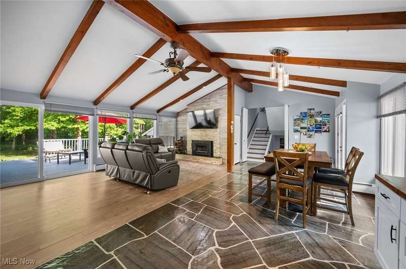 Welcome to this beautifully updated split level home nestled on a serene and private street in Chesterland. Situated on 1.30 acres, this 3 bedroom (potentially 4), 2.5 bath home offers a perfect blend of modern upgrades and timeless comfort. Enjoy two cozy fireplaces in the living rooms, a whole house generator hookup, and a thoughtfully updated layout ideal for everyday living and entertaining. A great size deck off the main living room and a sunroom off the lower level living area. There is also a greenhouse (10x16) off the laundry room. Updates include: refrigerator (2024), hot water tank (2025), mini split A/C (2022), fireplace insert in family room (2023), all new windows and family room slider (2023), and a completely renovated water system including softener and reverse osmosis (2025). All electrical outlets replaced (2021), all three bathrooms renovated (2021), family room fully refreshed (2020), bedroom flooring (2021), and deck railings replaced and painted (2024). Maintenance free metal siding. With even more improvements throughout, this move in ready gem is not to be missed. West Geauga School! Schedule your showing today! Motivated Seller!