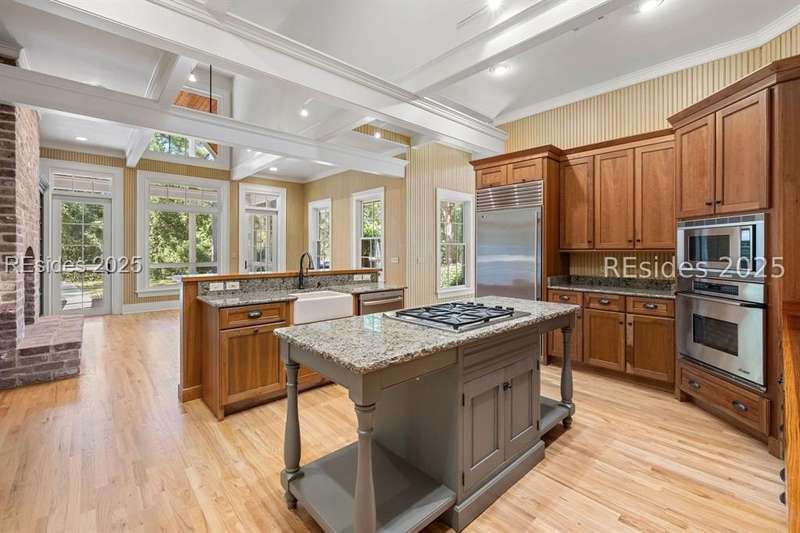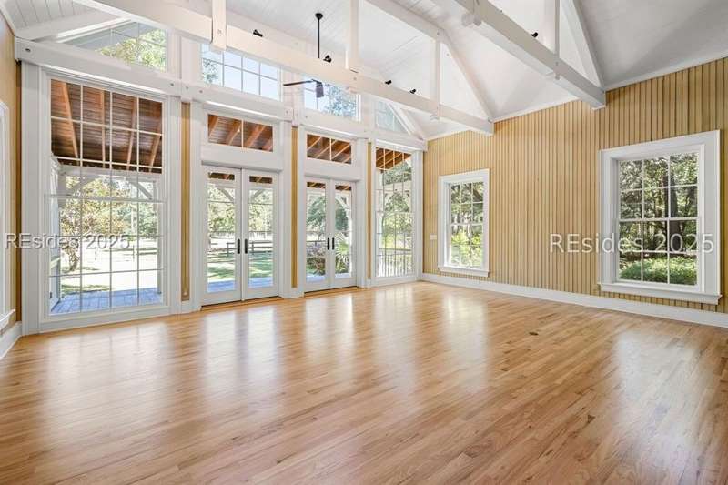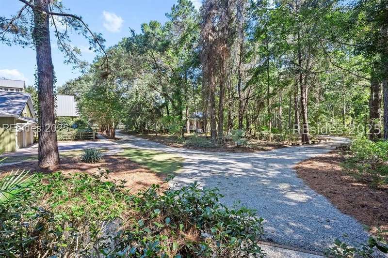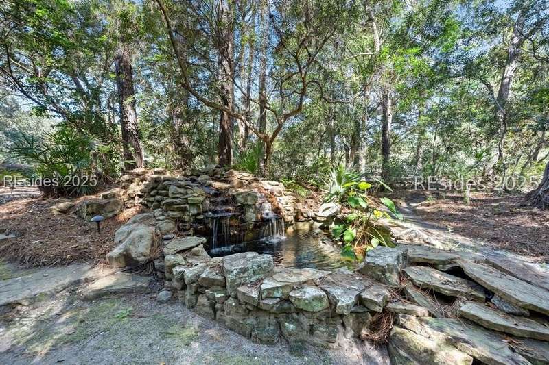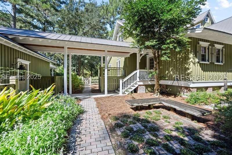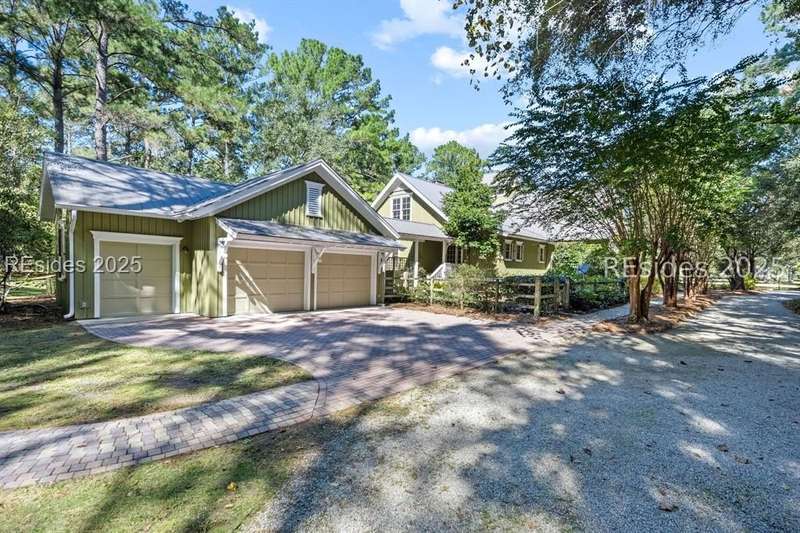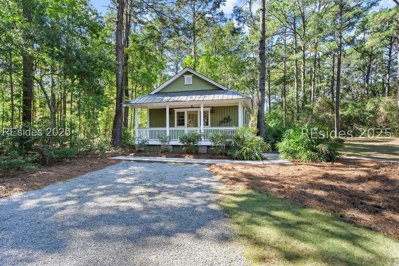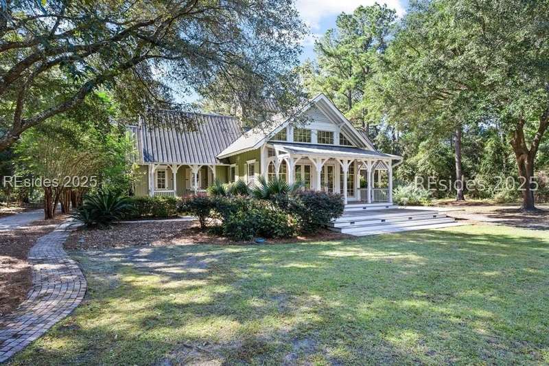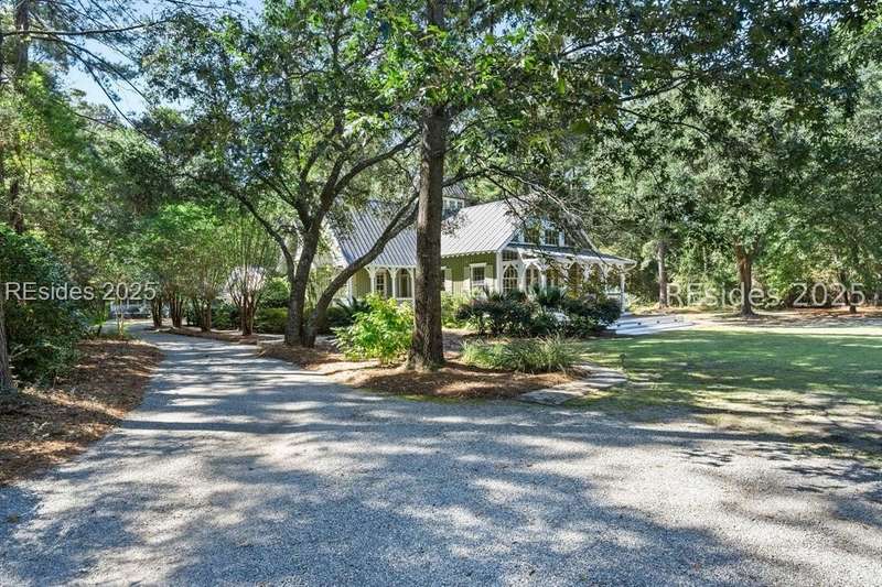 A Refined 13+ Acre Lowcountry Equestrian Retreat on Spring Island - A long, oak-lined drive leads to this extraordinary 13.2-acre equestrian estate - an intimate compound within the private, gated community of Spring Island. The property features a main house, guest cottage, 2+ car garage with golf cart bay and potting shed, the Orvis retreat, an equestrian viewing gazebo, three-stall barn, and two large, fenced pastures plus one paddock around the stalls. The main residence offers a welcoming front porch with sweeping views of pastures and the barn. French doors open to a vaulted great room filled with natural light and fine craftsmanship. The chef's kitchen with dual islands and premium appliances flows into a keeping room anchored by a Savannah brick fireplace. A screened porch opens to gardens for year-round Lowcountry living. The primary suite includes a sitting area, spa-style bath, and private porch. Guest suite, laundry, and bright studio or "woman cave" complete the main living areas. A breezeway connects the main house to the garage and potting shed, ideal for gardeners and nature enthusiasts. The guest cottage offers front and back porches, a sitting area with kitchenette, and two ensuite bedrooms, providing privacy and comfort for family or friends. Across a wooden bridge, the Orvis Room "man cave" features a wraparound porch with outdoor fireplace overlooking a tranquil water feature. Inside, a great room, office, or bourbon room, and full bath create an ideal gathering place. The gazebo overlooks pastures, perfect for entertaining or watching dressage. The three-stall barn includes a tack room, bath, utility area, and space for future living quarters. Two large, fenced pastures and one paddock provide ample room for horses. Life on Spring Island is unlike anywhere else, offering 3,000 acres of preserved natural beauty and premier amenities: Arnold Palmer-designed golf, equestrian center, tennis and pickleball, fitness complex with heated and chilled saltwater pools, scenic trails for walking or riding, a 7.5-acre community garden, and an inspiring art barn. (Note - 5 photos with furniture in them have been virtually staged to show the home's potential)