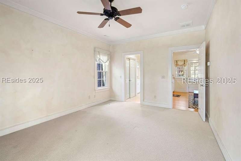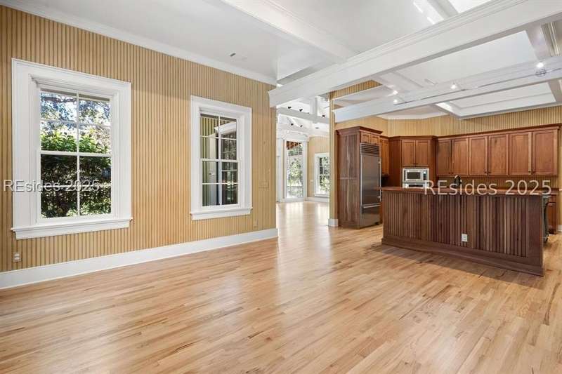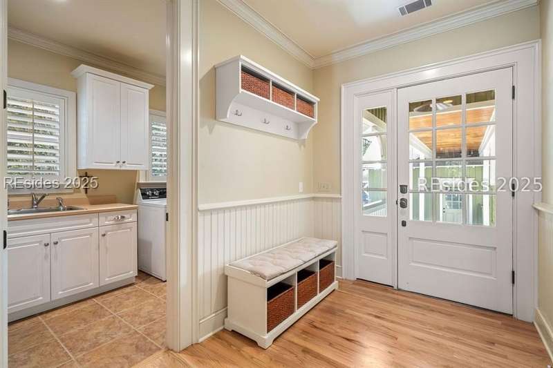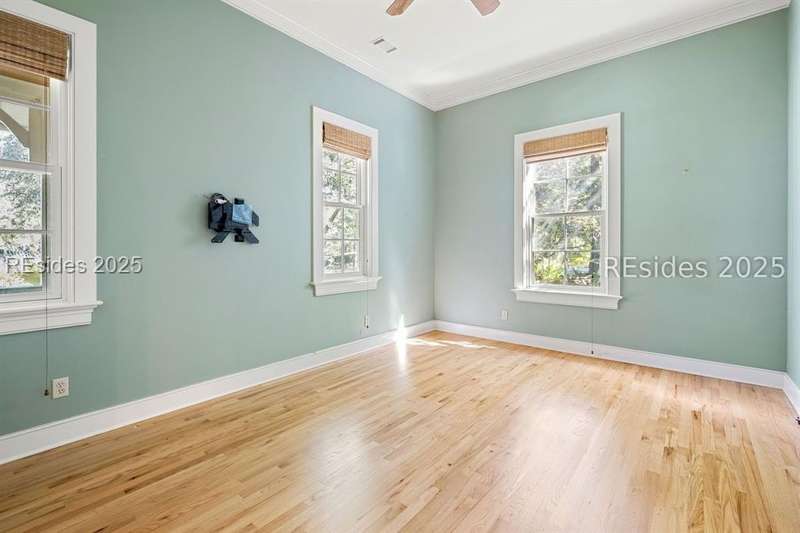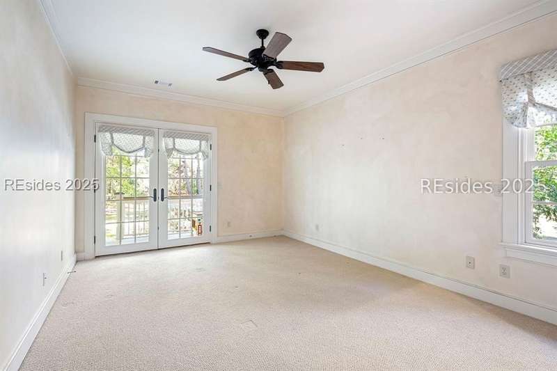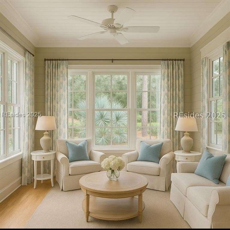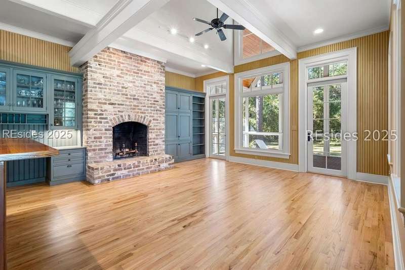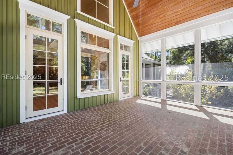 A Refined 13+ Acre Lowcountry Equestrian Retreat on Spring Island - A long, oak-lined drive leads to this extraordinary 13.2-acre equestrian estate - an intimate compound within the private, gated community of Spring Island. The property features a main house, guest cottage, 2+ car garage with golf cart bay and potting shed, the Orvis retreat, an equestrian viewing gazebo, three-stall barn, and two large, fenced pastures plus one paddock around the stalls. The main residence offers a welcoming front porch with sweeping views of pastures and the barn. French doors open to a vaulted great room filled with natural light and fine craftsmanship. The chef's kitchen with dual islands and premium appliances flows into a keeping room anchored by a Savannah brick fireplace. A screened porch opens to gardens for year-round Lowcountry living. The primary suite includes a sitting area, spa-style bath, and private porch. Guest suite, laundry, and bright studio or "woman cave" complete the main living areas. A breezeway connects the main house to the garage and potting shed, ideal for gardeners and nature enthusiasts. The guest cottage offers front and back porches, a sitting area with kitchenette, and two ensuite bedrooms, providing privacy and comfort for family or friends. Across a wooden bridge, the Orvis Room "man cave" features a wraparound porch with outdoor fireplace overlooking a tranquil water feature. Inside, a great room, office, or bourbon room, and full bath create an ideal gathering place. The gazebo overlooks pastures, perfect for entertaining or watching dressage. The three-stall barn includes a tack room, bath, utility area, and space for future living quarters. Two large, fenced pastures and one paddock provide ample room for horses. Life on Spring Island is unlike anywhere else, offering 3,000 acres of preserved natural beauty and premier amenities: Arnold Palmer-designed golf, equestrian center, tennis and pickleball, fitness complex with heated and chilled saltwater pools, scenic trails for walking or riding, a 7.5-acre community garden, and an inspiring art barn. (Note - 5 photos with furniture in them have been virtually staged to show the home's potential)