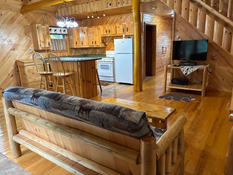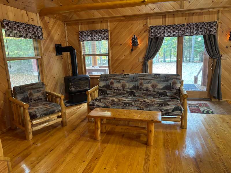 Extremely well-kept custom built log cabin for year-round living or your next vacation place. All custom cedar posts & trim with T & G white pine walls, red pine log exterior & oak flooring from timber cut on the property. Very well insulated & maintained throughout the years. Built between 2005 & 2007, this 1 owner property shows pride in ownership. Forced air heat, plus a thermostat-controlled gas fireplace. All furniture & appliances are staying, so unpack and start using! Have an overflow of guests? No problem. There's a perfect cleared out area for a camper, along with power! This is a great spot for all your recreational desires. Right across the road from Rainy Lake with shared-private access, plus super close to 1000's of acres of State land & trails.