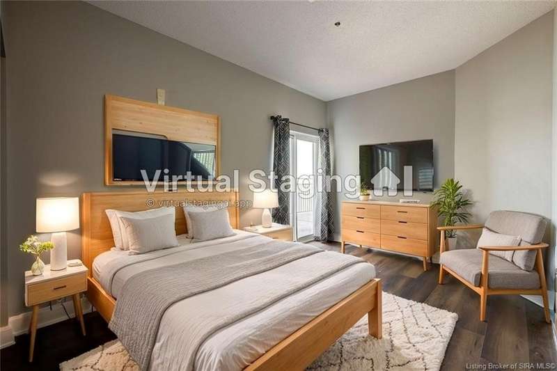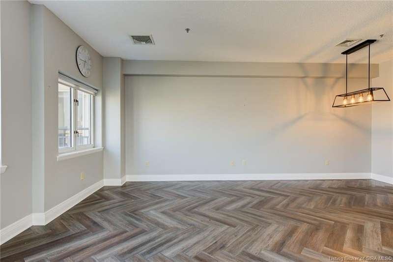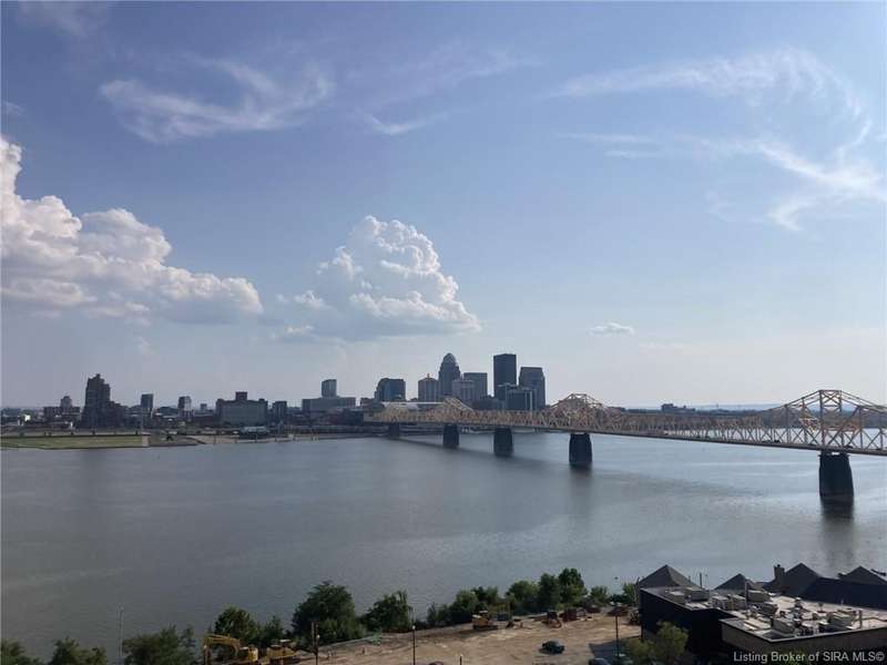 HARBOURS PENTHOUSE 1105 - SPECTACULAR VIEWS of the Louisville Skyline & Ohio River! This 2 bedroom condo w/2 ensuite baths! This sought after community blends luxury & convenience in the heart of Downtown Jeffersonville. Custom kitchen w/granite, tall upper cabinets, panty & stainless appliances. LVP in herringbone pattern throughout most of the condo. Living has vaulted ceiling, modern ceiling fan, blinds & sliding door to your private balcony. The Primary bedroom has ceiling fan, large walk-in closet & slider to the balcony. The primary bath features a large vanity, tile floors, walk-in shower w/seat, standing & sitting dual shower heads, reeded glass doors, linen closet & laundry. The 2nd bath also has custom cabinetry & updated walk-in shower w/reeded glass door. The 2nd Bedroom has slider to patio & attached to the 2nd bath. Deeded covered side by side parking spaces 110 & 111. THE LOCATION for THUNDER OVER LOUISVILLE, adjacent to multiple restaurants & entertainment options. Harbours is a premier property with gated entries, fitness center, indoor & outdoor pools, grills on-site, patio/gazebo areas. Monthly HOA covers amenities, cable, high speed internet, HBO, Showtime, water, sewer, trash, water softener & master insurance. HSA Home Warranty. We Have the View!