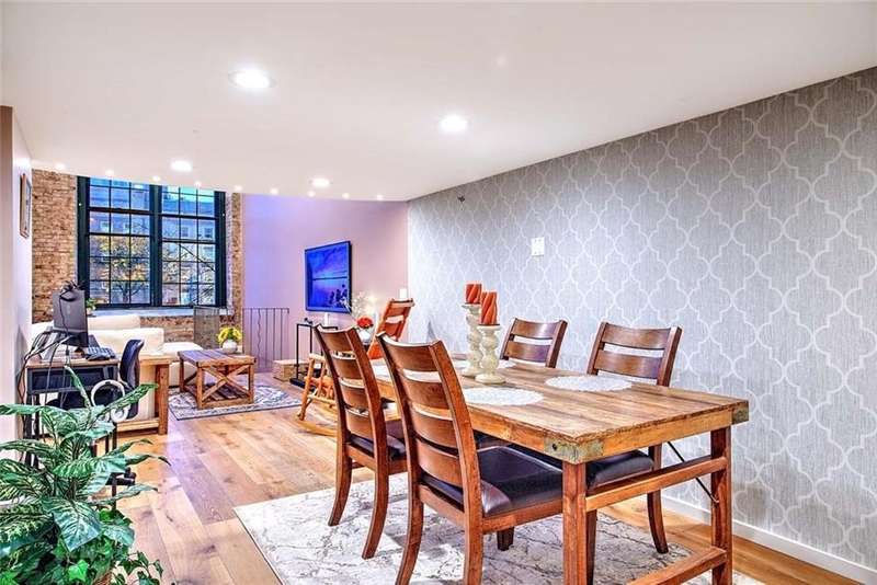 On the River! Industrial chic river view residence at Riverfront Lofts, a design by Morris Nathanson in 2004, located in the Arts/Armory District of Pawtucket. It honors its industrial origins, blending contemporary amenities to meet today’s lifestyle. The building is set on the banks of the Blackstone River, the gateway to industrialization. This rare unit offers views of Blackstone River from all 3 levels of living. Distinctive interior design highlights this exceptional theme of modern merging with old in this remodeled living space. The entry leads to the open concept living area, dining area and kitchen with a large pantry and laundry. A bedroom and striking bathroom complete the first-floor layout. The primary suite on the top level includes a bathroom with marble and glass tile and walk-in closet. Step down to the lower level with windows overlooking the river, an ideal space for a media room, home office, or a home gym. The lower level has a plumbed set up for a potential 3rd full bathroom. 2 Side by Side Deeded Parking Spaces. 6 charging stations on the premises provide convenience for EV owners. Walk to new train station. I-95 access within minutes. Brown University/RISD is a 12-minute drive. Walk to: A brewery, distillery, bakery, public library, and the wonderful Burbage theater.