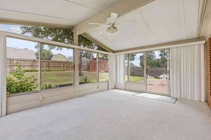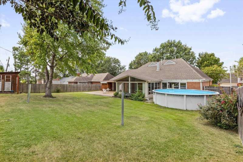 Lovely move in ready home on quiet cove! Lots of extra features and upgrades! Beautiful kitchen with recent designer cabinets, tile back splash and farm sink! Freshly painted. Welcoming all-season sun room. Double sided fireplace with gas logs! Vaulted ceilings lend a sense of spaciousness. Lots of ceiling fans. Plantation shutters and 2 ' blinds. Cedar closet. Wired for a generator. Newer double hung vinyl tilt-in windows for efficiency and ease of cleaning. Newer roof. A solid well built and well maintained and updated home! No city taxes. Beautiful private yard and outdoors living areas including an oversize patio and covered porch! Above ground pool for your enjoyment or it can go. Don't miss the attached workshop and there is also a separate storage building. Lovely mature landscaping. A friends and family special!